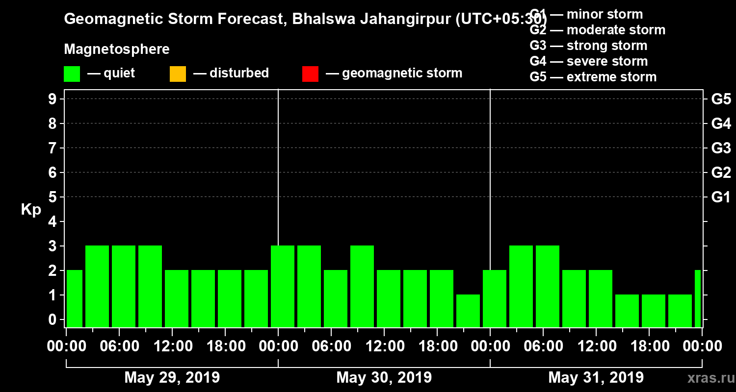 Geomagnetic storm forecast in Bhalswa Jahangirpur for May 29, 2019