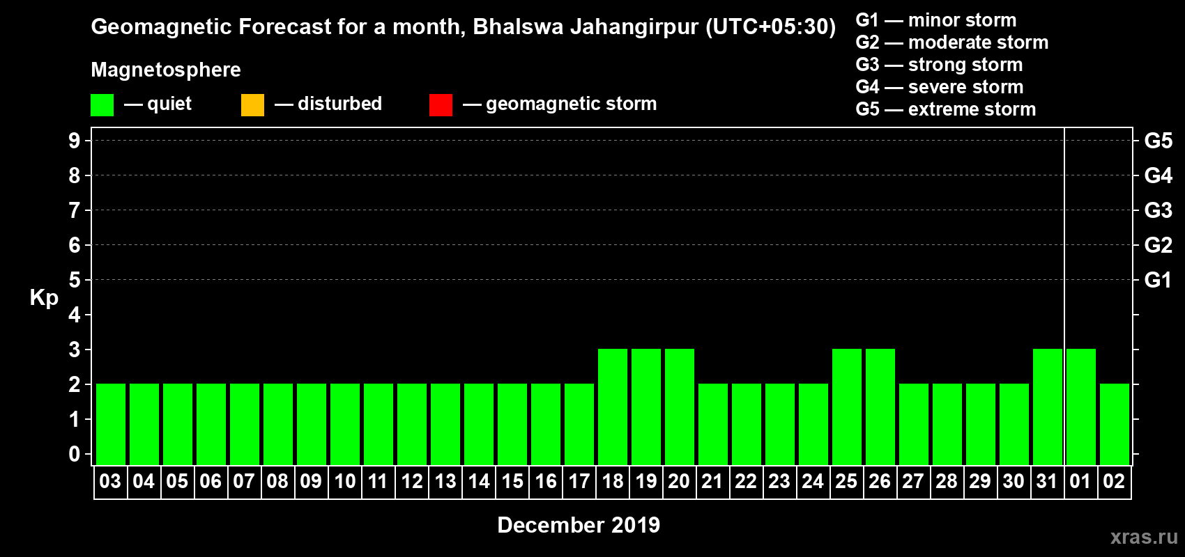 Geomagnetic storm forecast in Bhalswa Jahangirpur for Dec 03, 2019