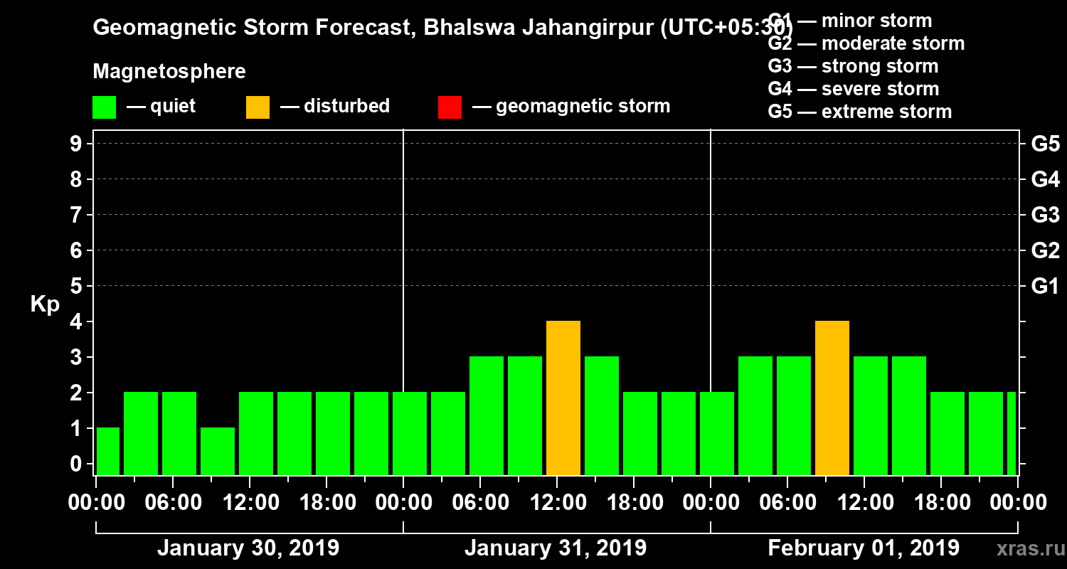 Geomagnetic storm forecast in Bhalswa Jahangirpur for Jan 30, 2019
