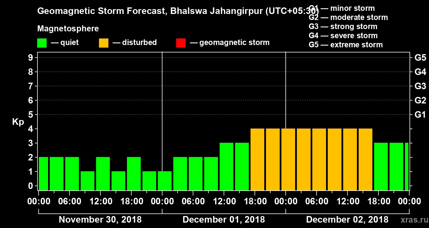 Geomagnetic storm forecast in Bhalswa Jahangirpur for Nov 30, 2018