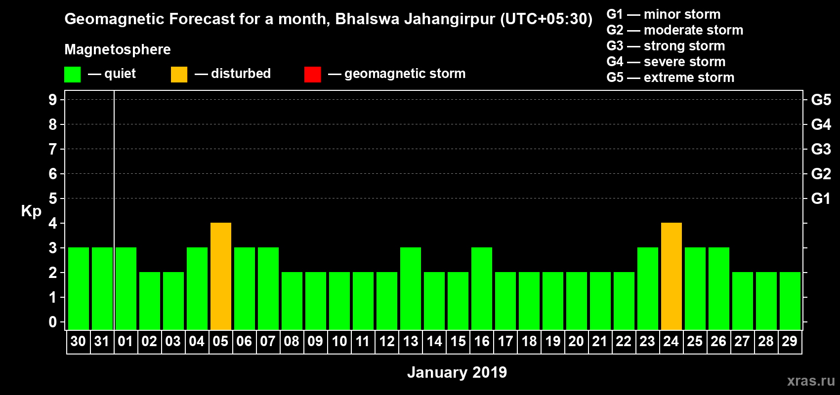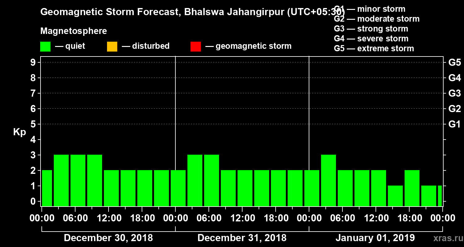 Geomagnetic storm forecast in Bhalswa Jahangirpur for Dec 30, 2018