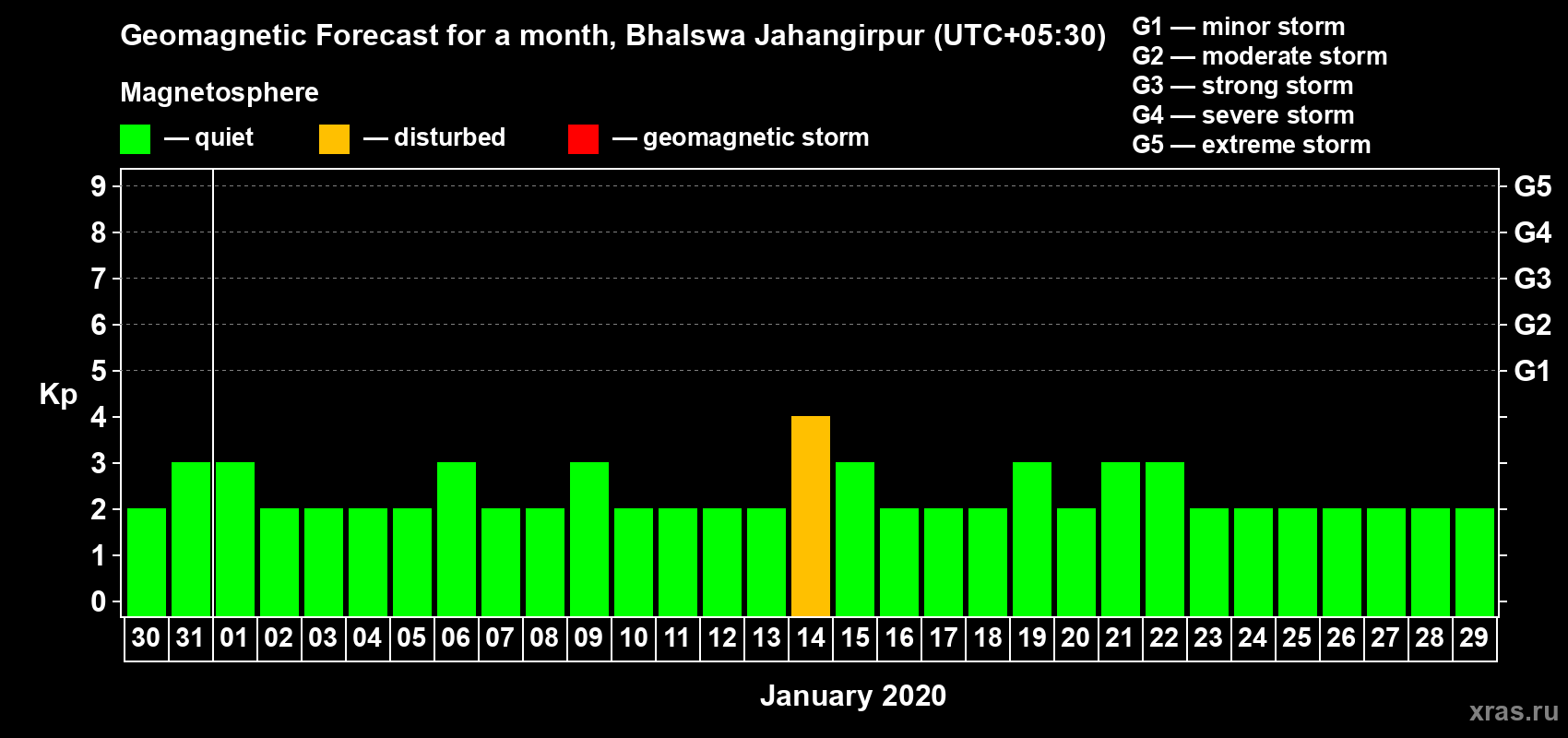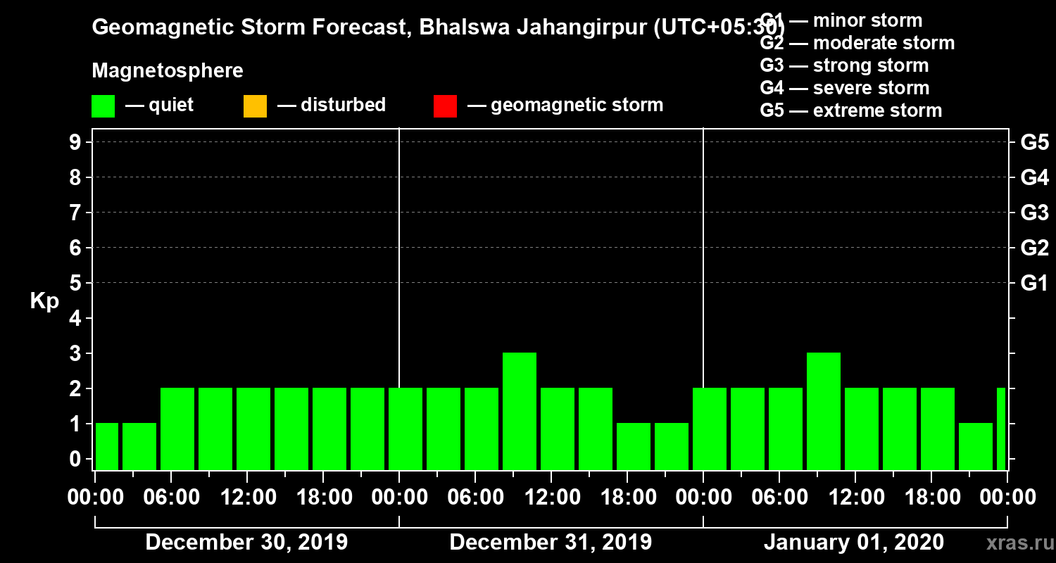 Geomagnetic storm forecast in Bhalswa Jahangirpur for Dec 30, 2019