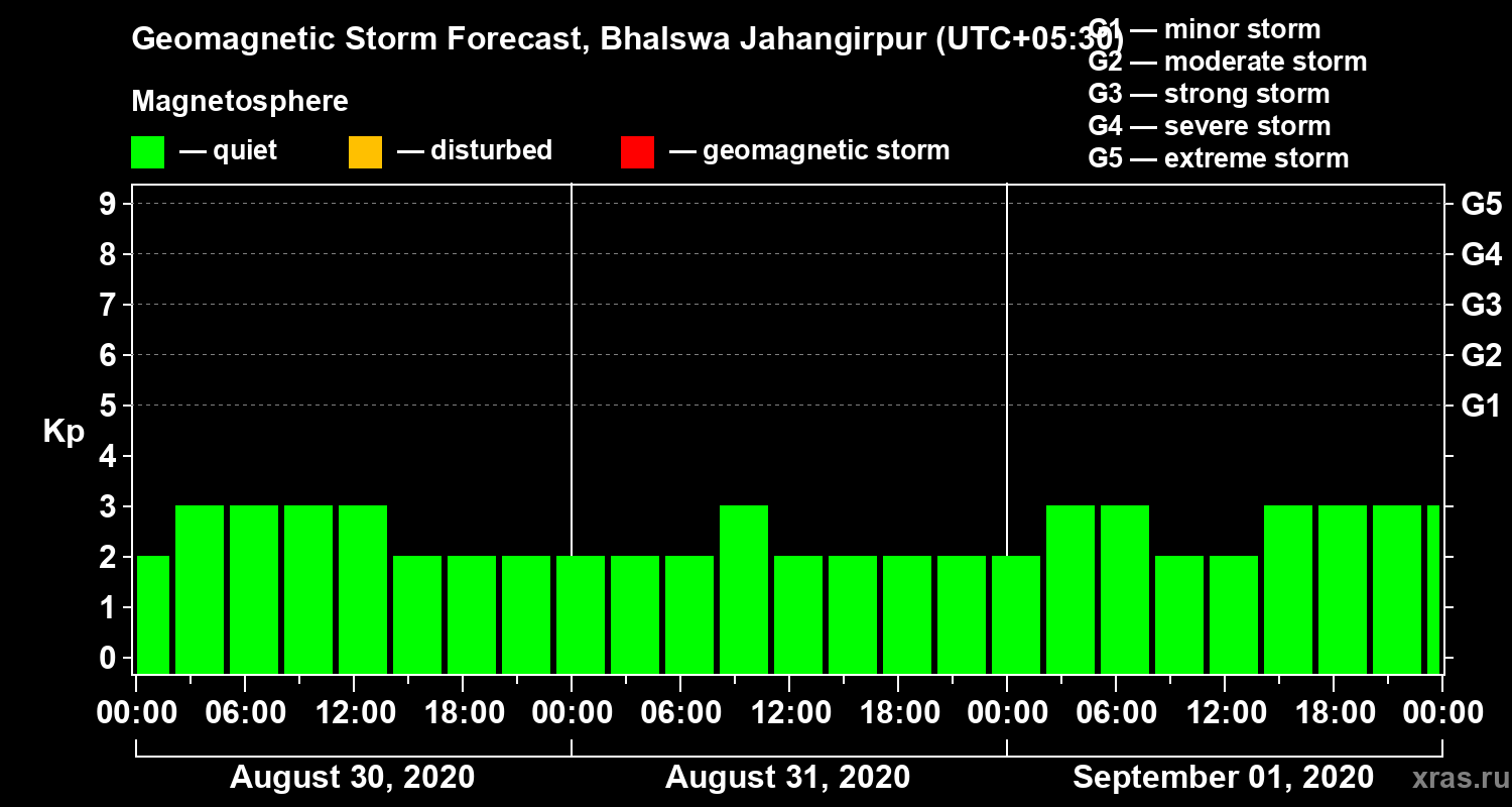 Geomagnetic activity forecast in Bhalswa Jahangirpur — Aug 30, 2020