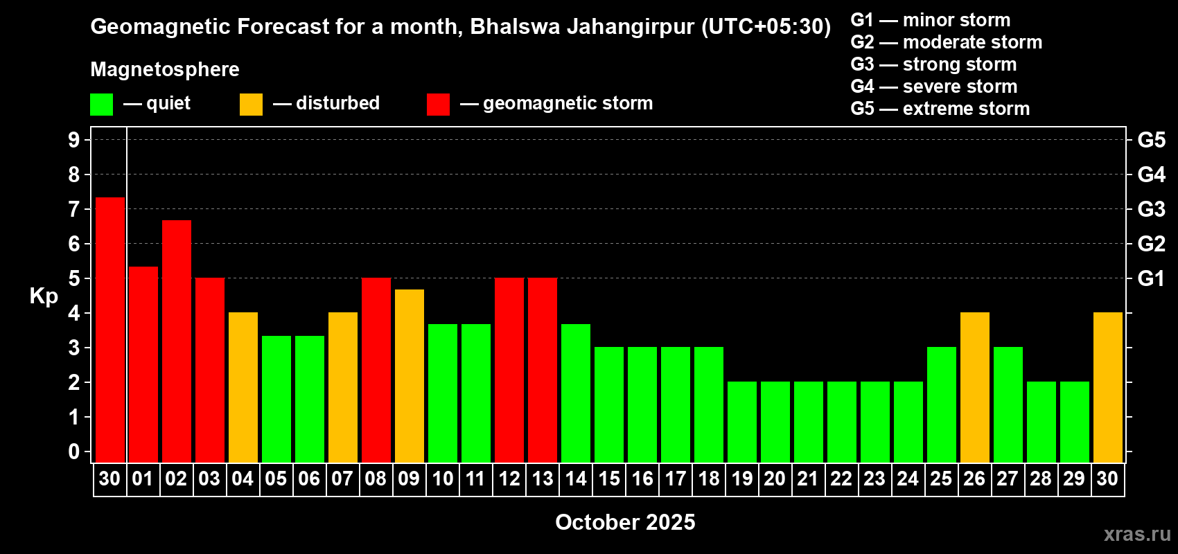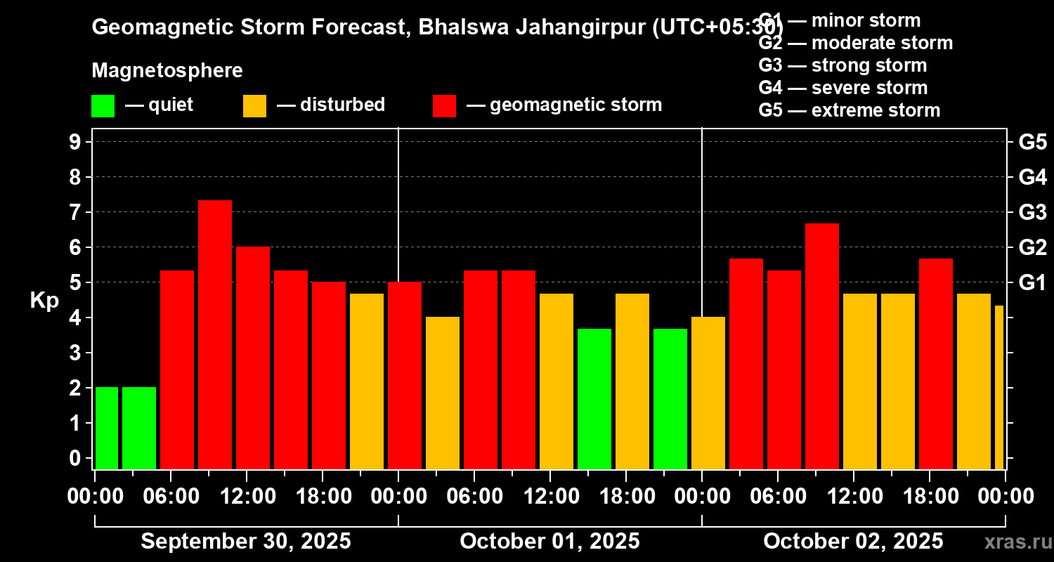 Geomagnetic storm forecast in Bhalswa Jahangirpur for Sep 30, 2025