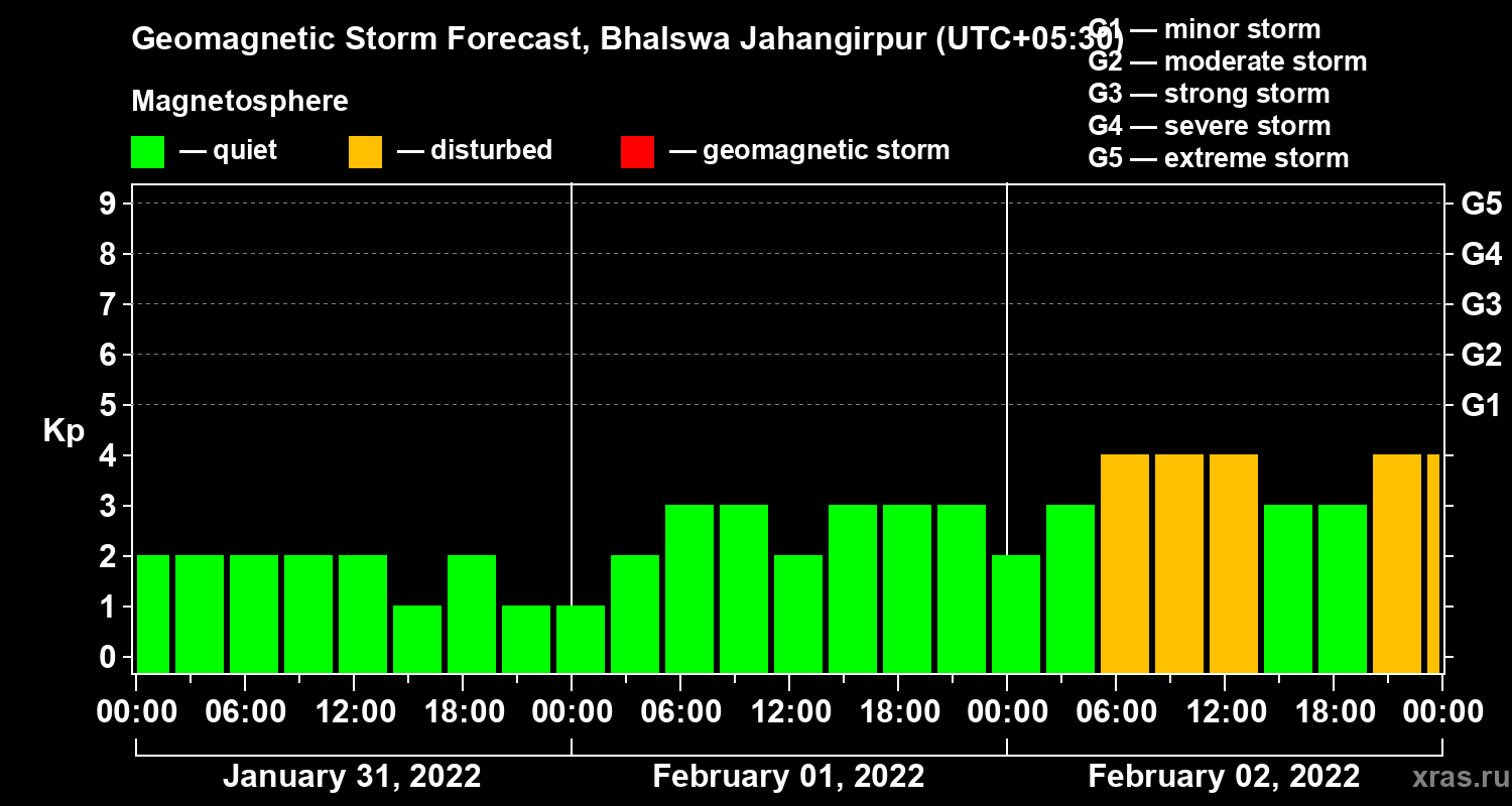 Geomagnetic storm forecast in Bhalswa Jahangirpur for Jan 31, 2022