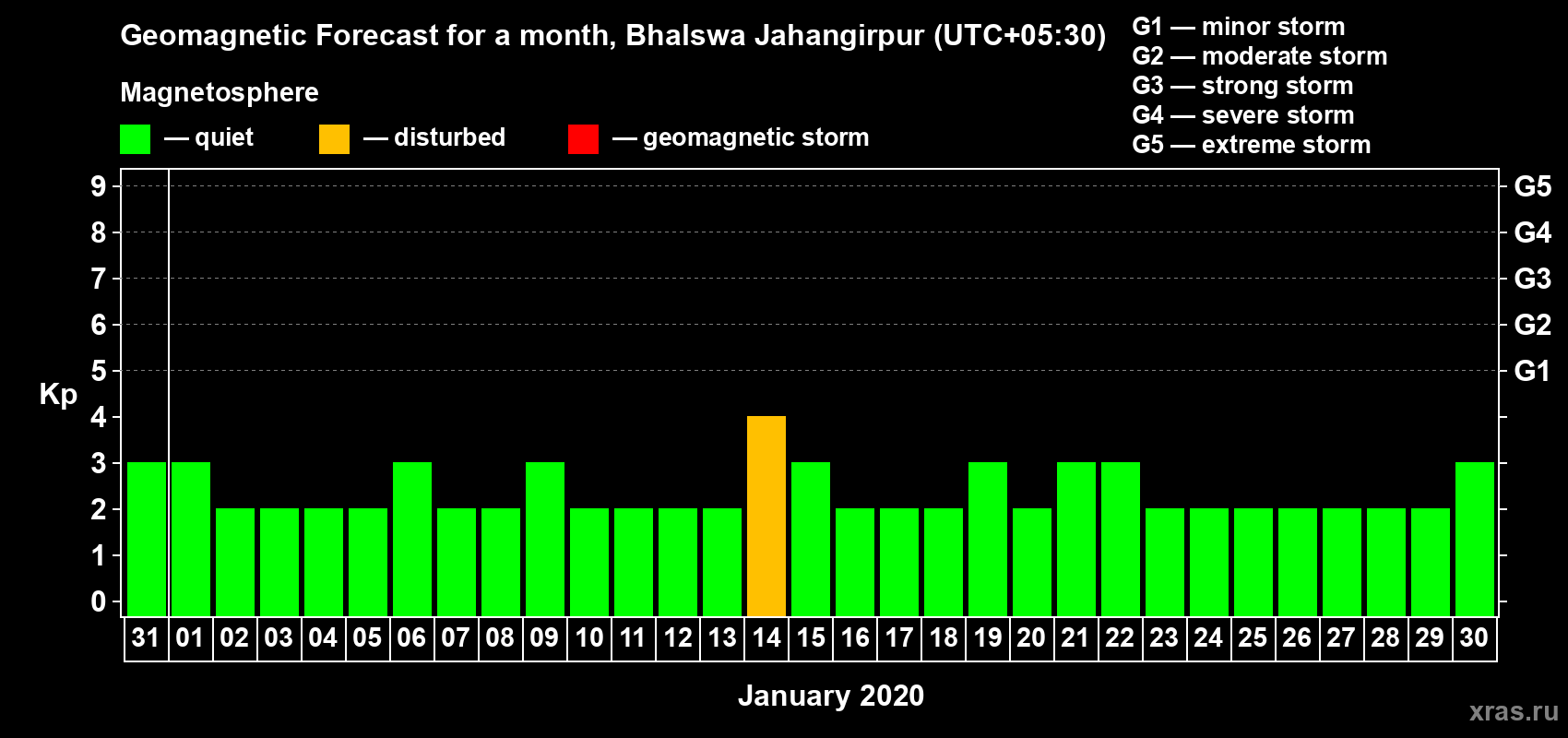Geomagnetic storm forecast in Bhalswa Jahangirpur for Dec 31, 2019