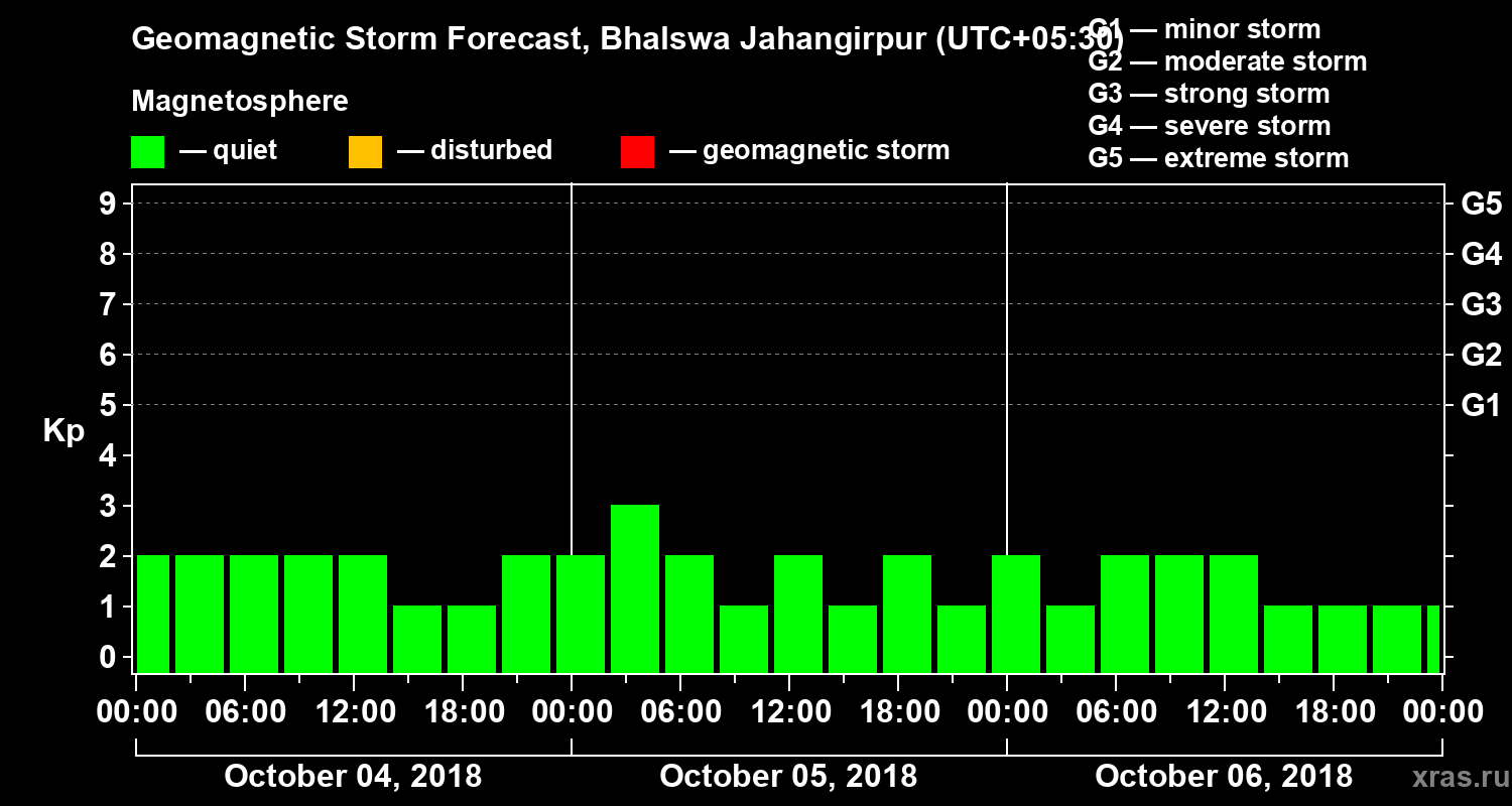 Geomagnetic storm forecast in Bhalswa Jahangirpur for Oct 04, 2018