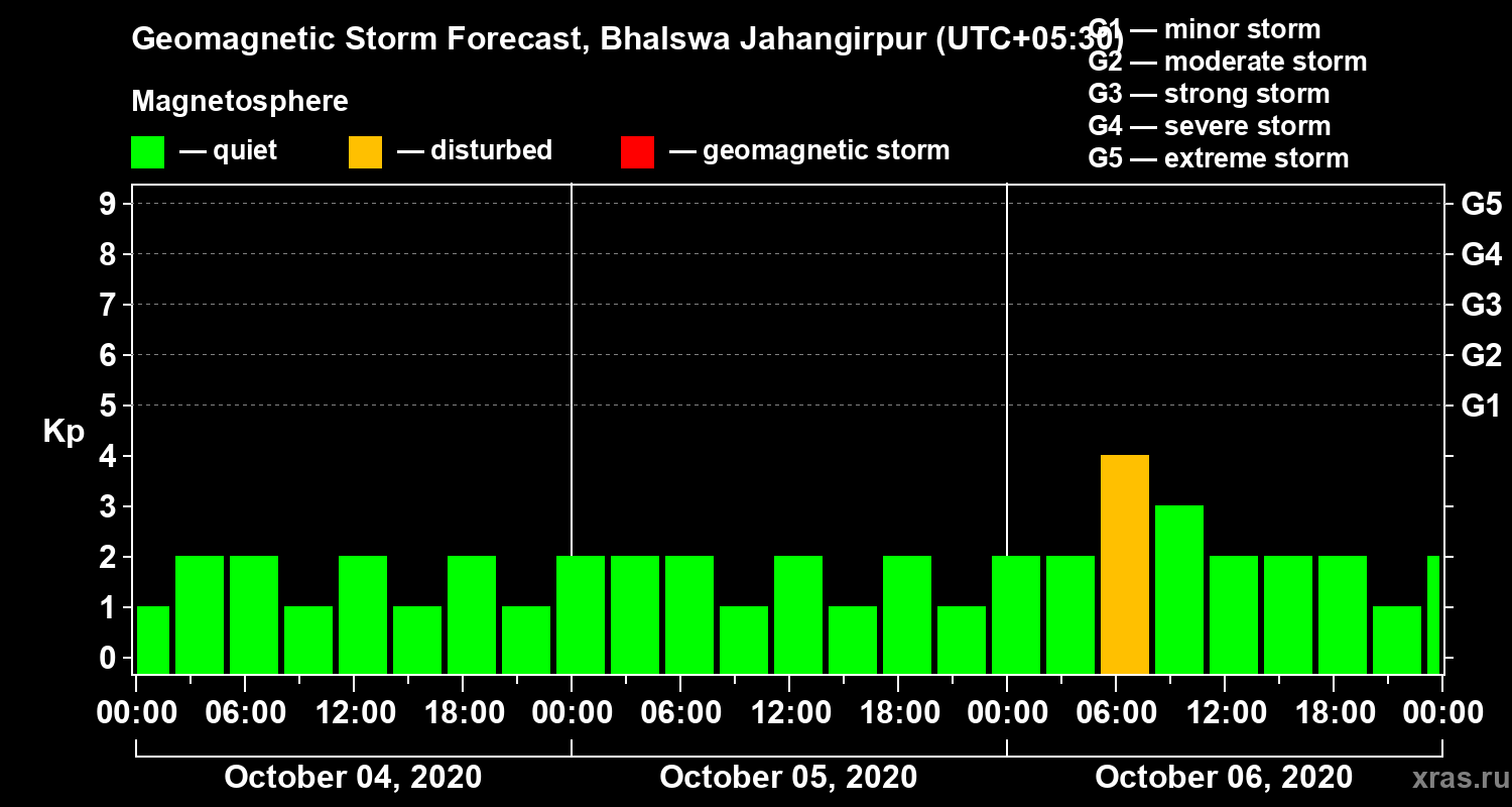 Geomagnetic activity forecast in Bhalswa Jahangirpur — Oct 04, 2020