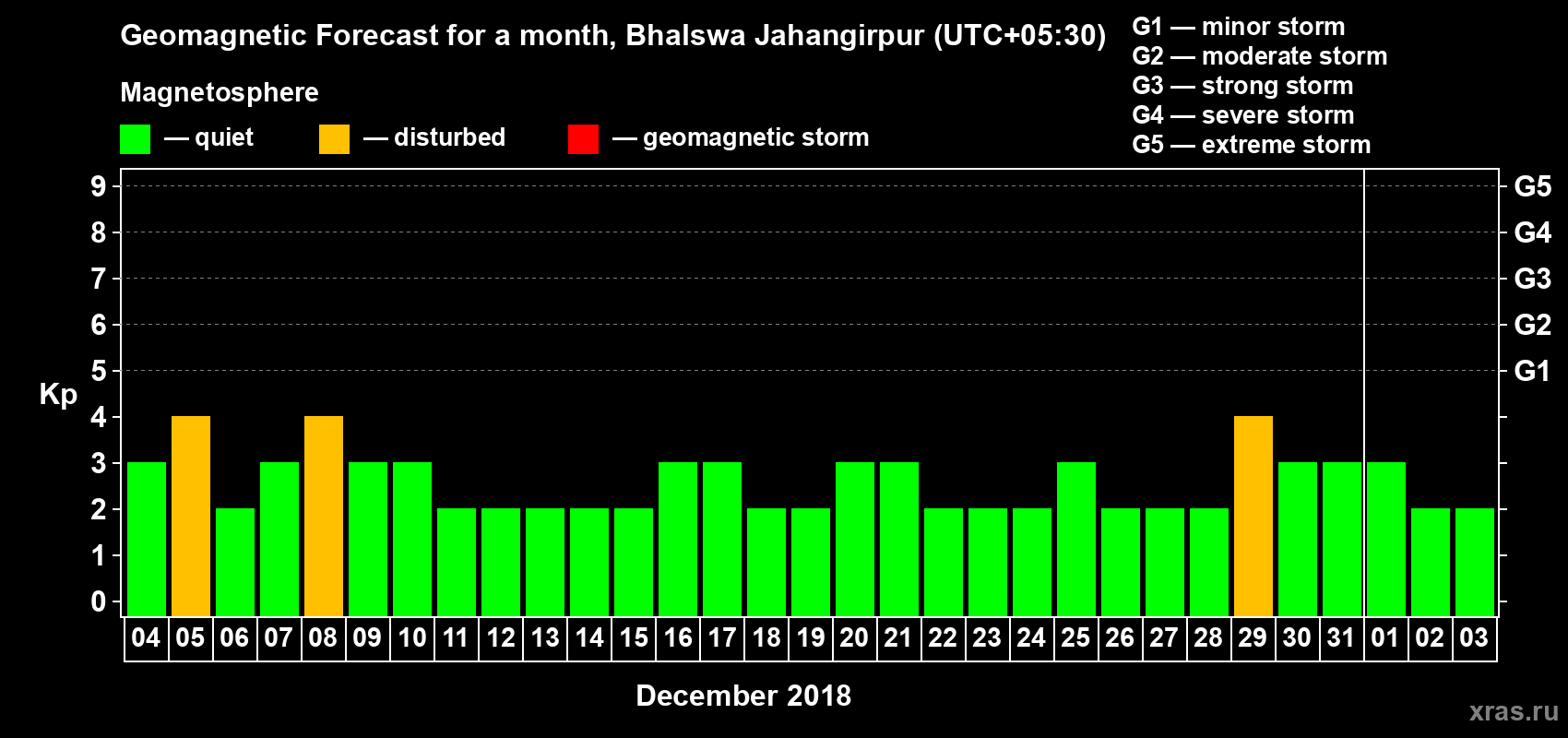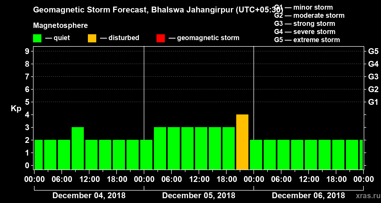 Geomagnetic storm forecast in Bhalswa Jahangirpur for Dec 04, 2018