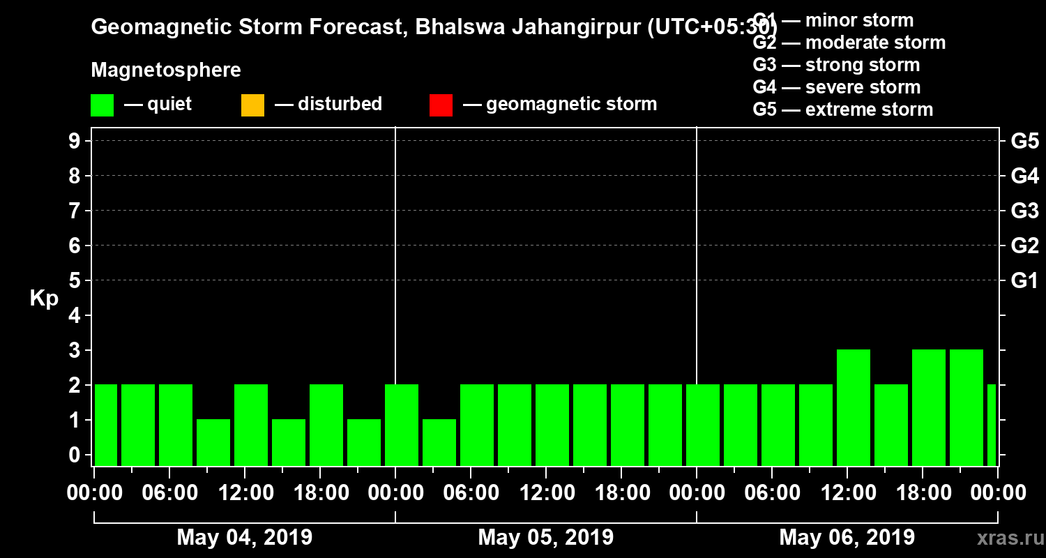 Geomagnetic activity forecast in Bhalswa Jahangirpur — May 04, 2019