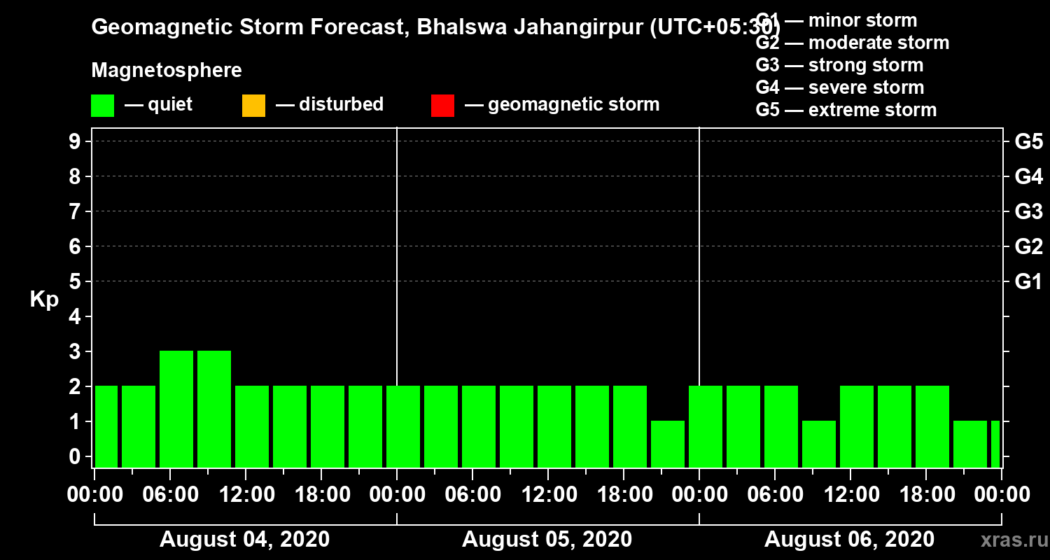 Geomagnetic activity forecast in Bhalswa Jahangirpur — Aug 04, 2020