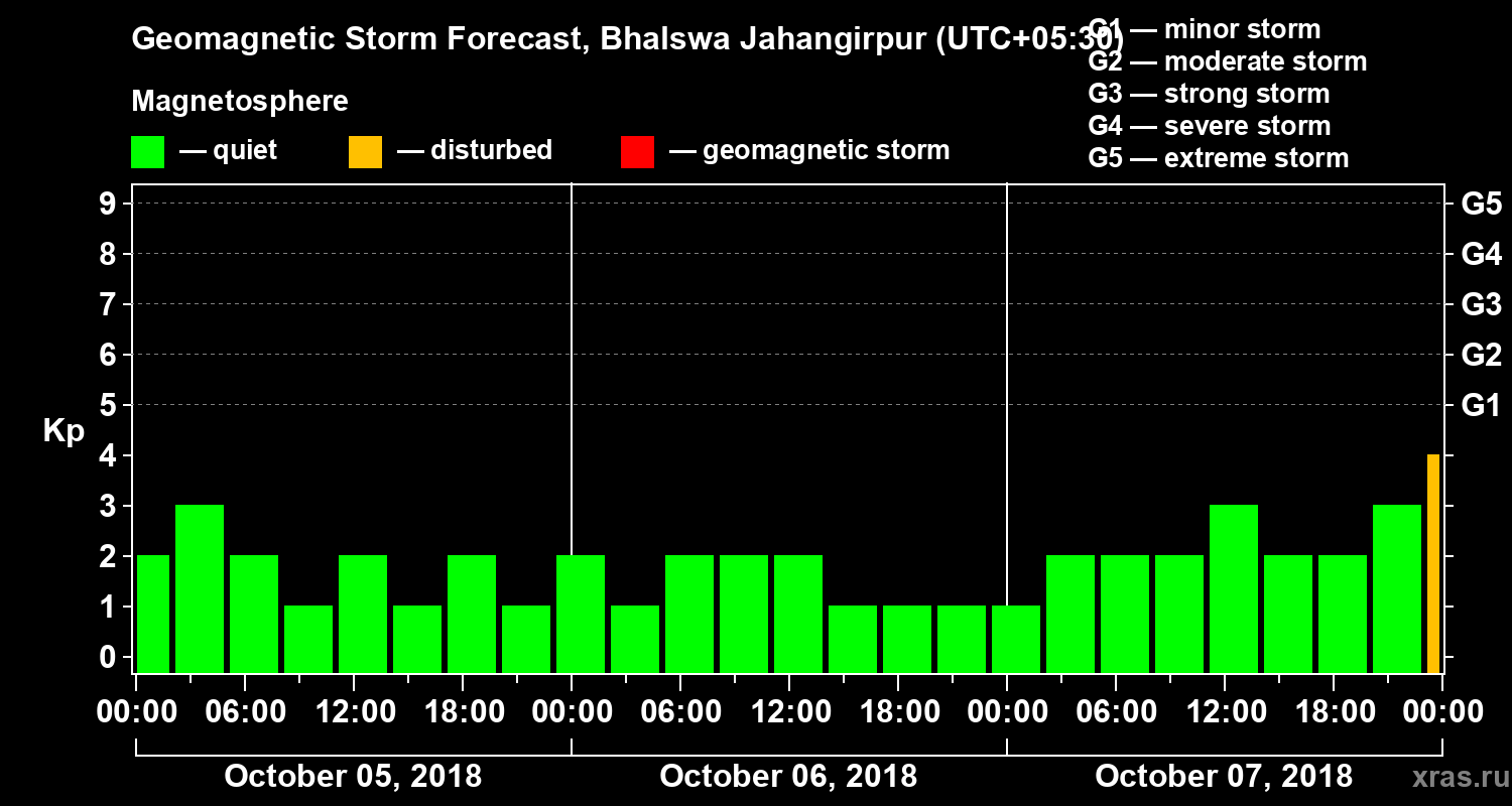 Geomagnetic storm forecast in Bhalswa Jahangirpur for Oct 05, 2018