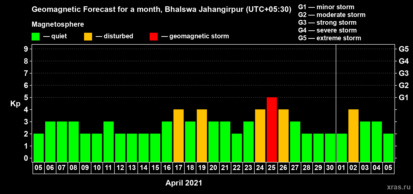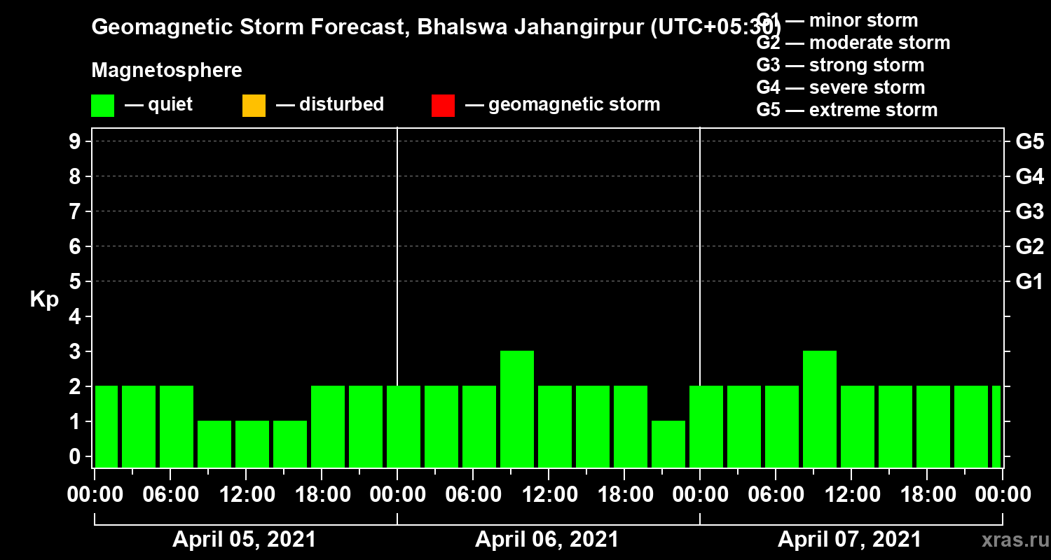 Geomagnetic storm forecast in Bhalswa Jahangirpur for Apr 05, 2021