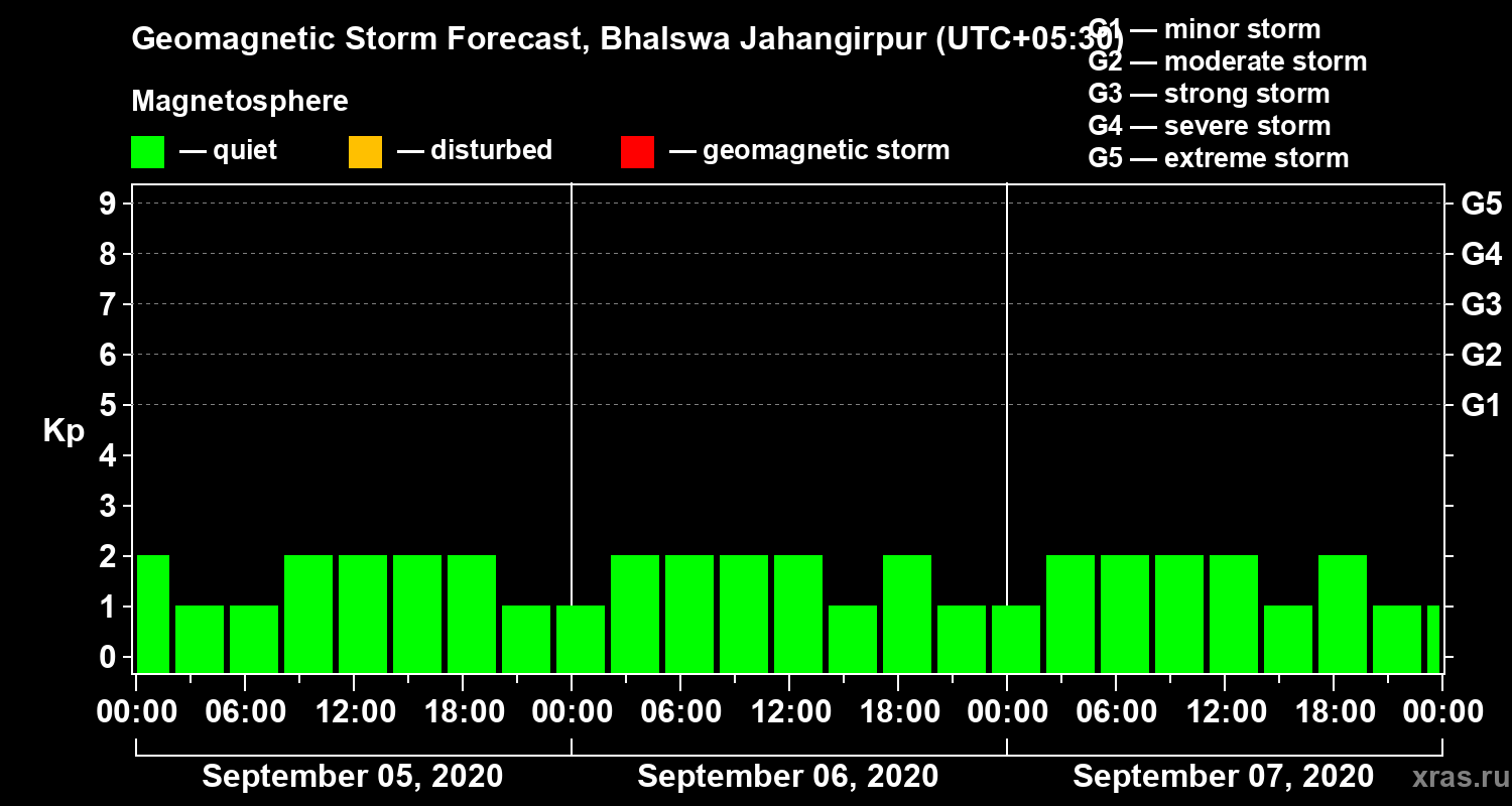 Geomagnetic storm forecast in Bhalswa Jahangirpur for Sep 05, 2020