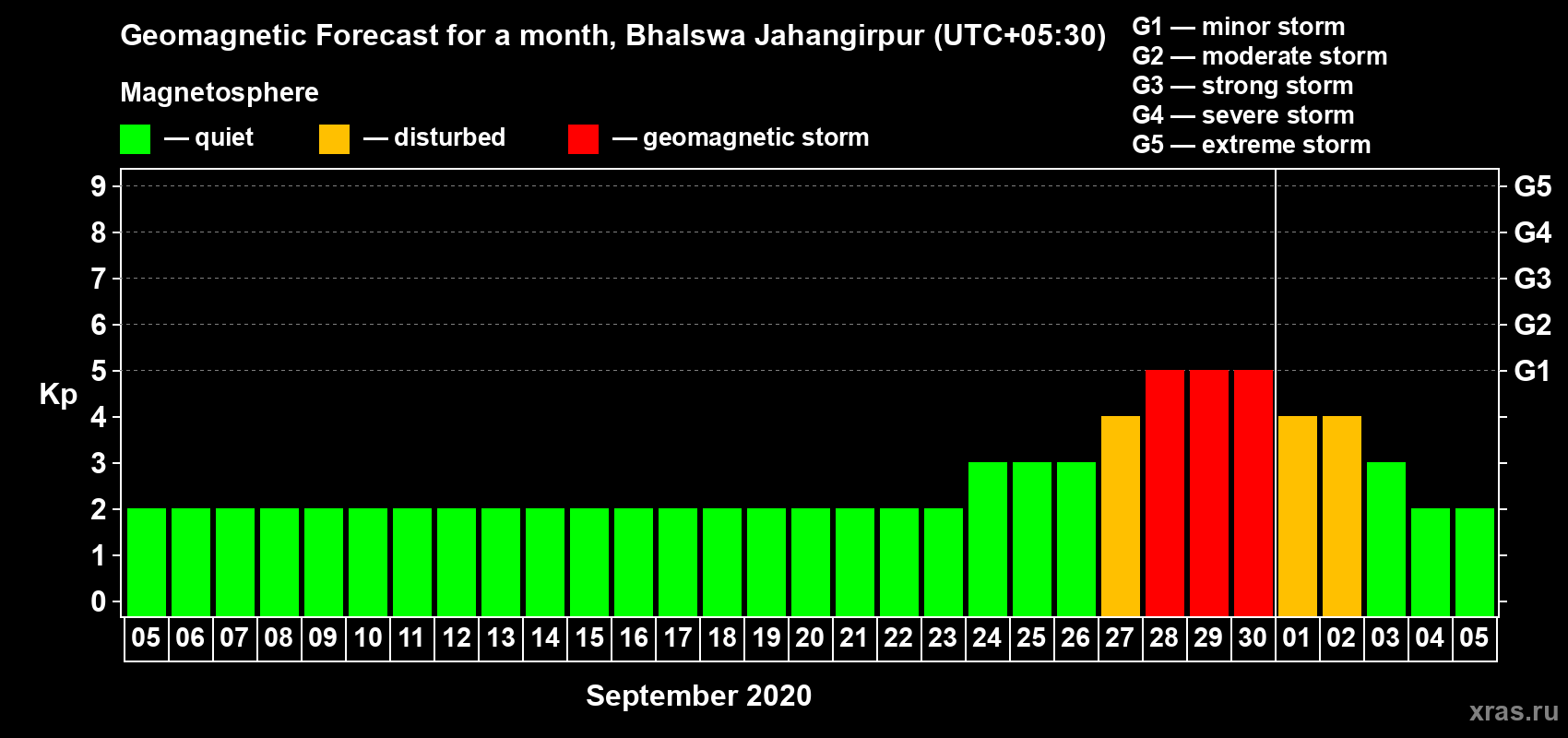 Geomagnetic activity forecast in Bhalswa Jahangirpur — Sep 05, 2020