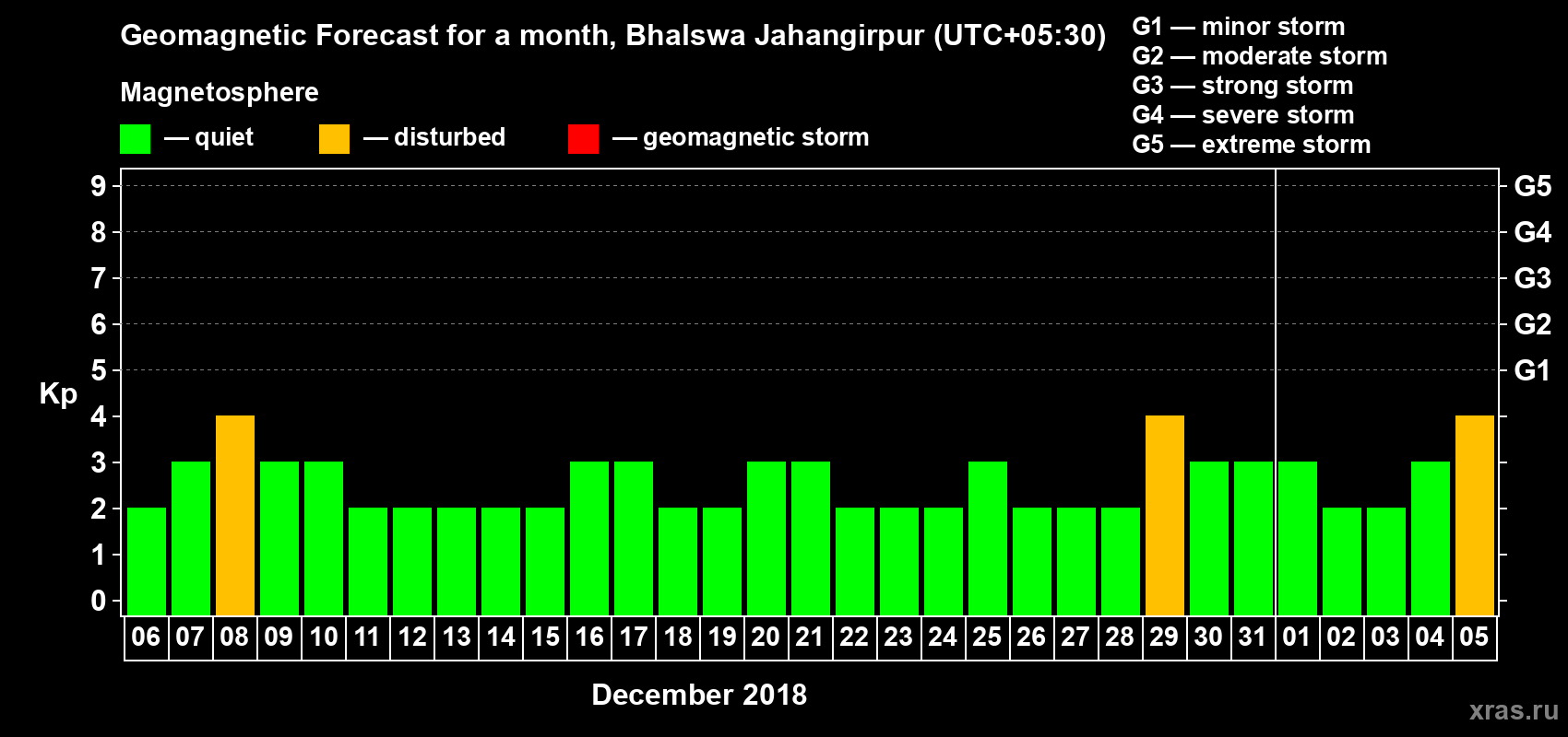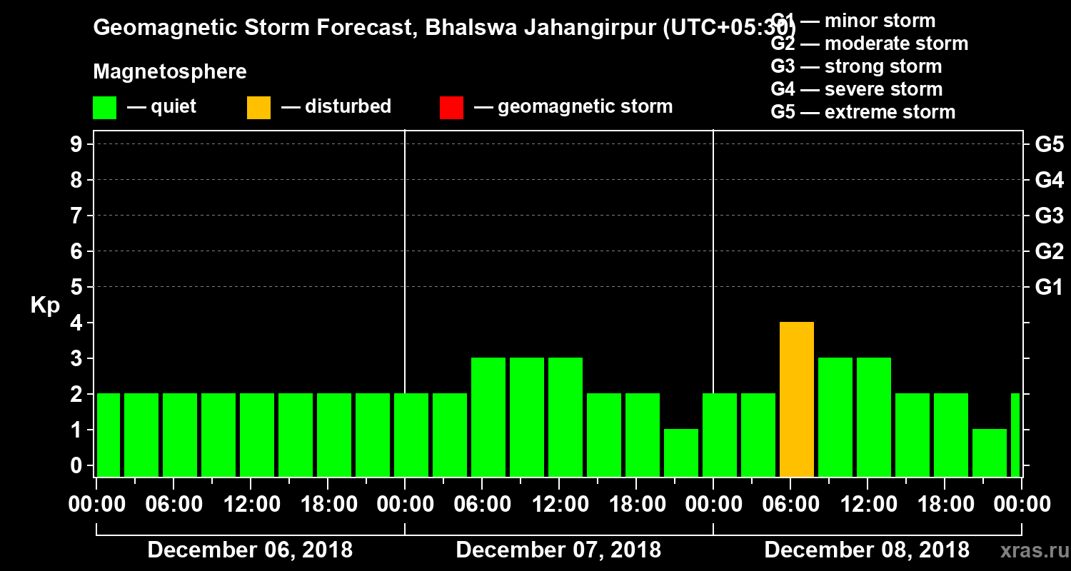 Geomagnetic storm forecast in Bhalswa Jahangirpur for Dec 06, 2018