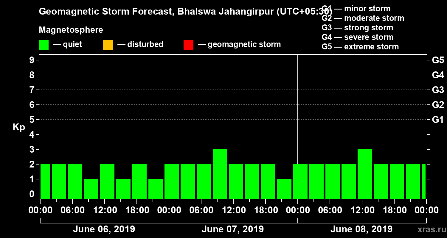 Geomagnetic storm forecast in Bhalswa Jahangirpur for Jun 06, 2019