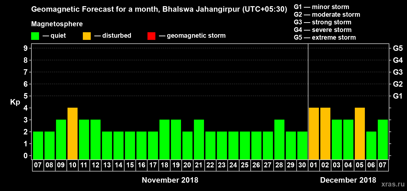 Geomagnetic storm forecast in Bhalswa Jahangirpur for Nov 07, 2018