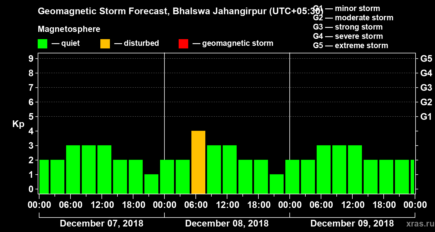 Geomagnetic storm forecast in Bhalswa Jahangirpur for Dec 07, 2018