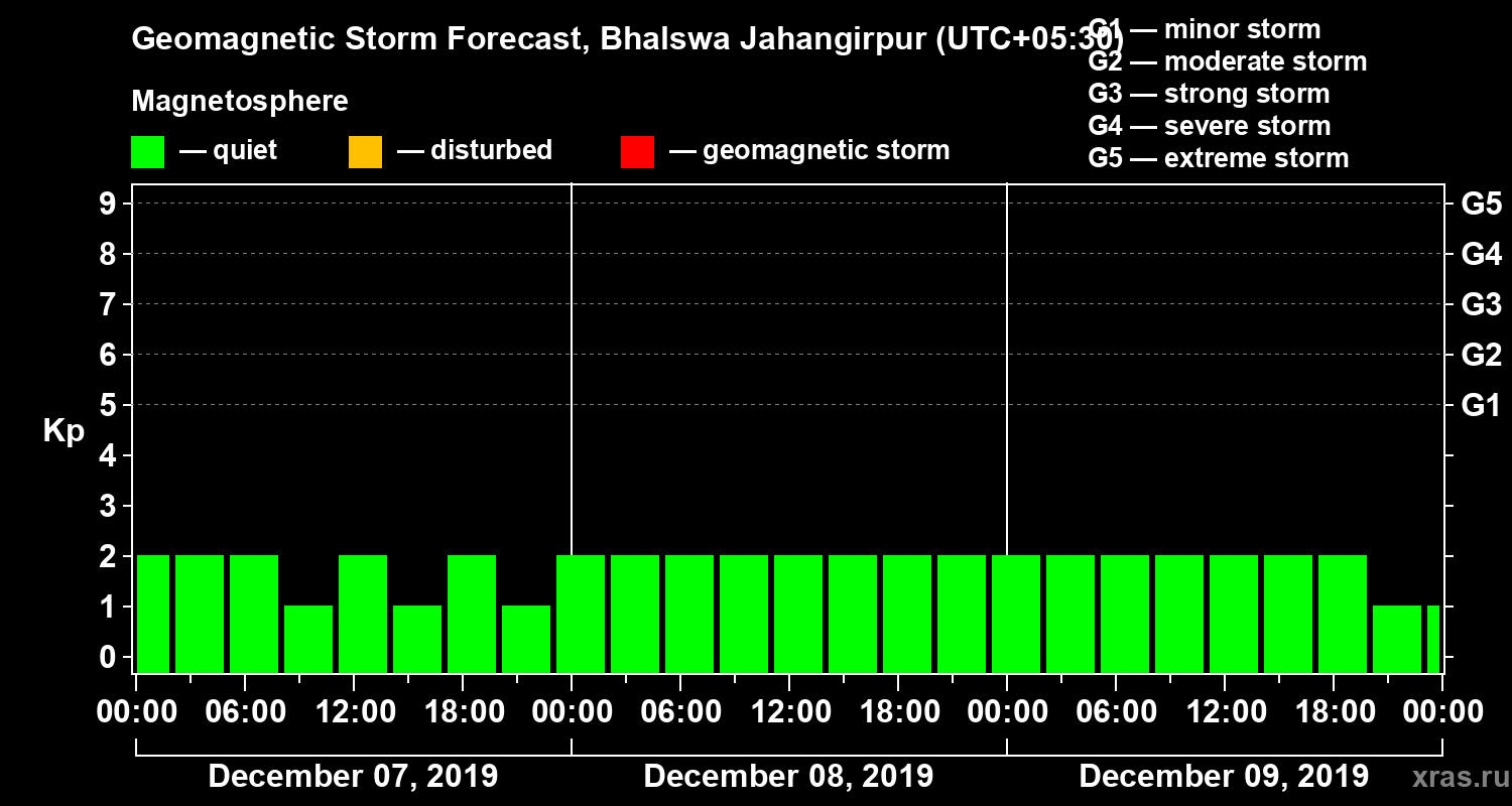 Geomagnetic storm forecast in Bhalswa Jahangirpur for Dec 07, 2019