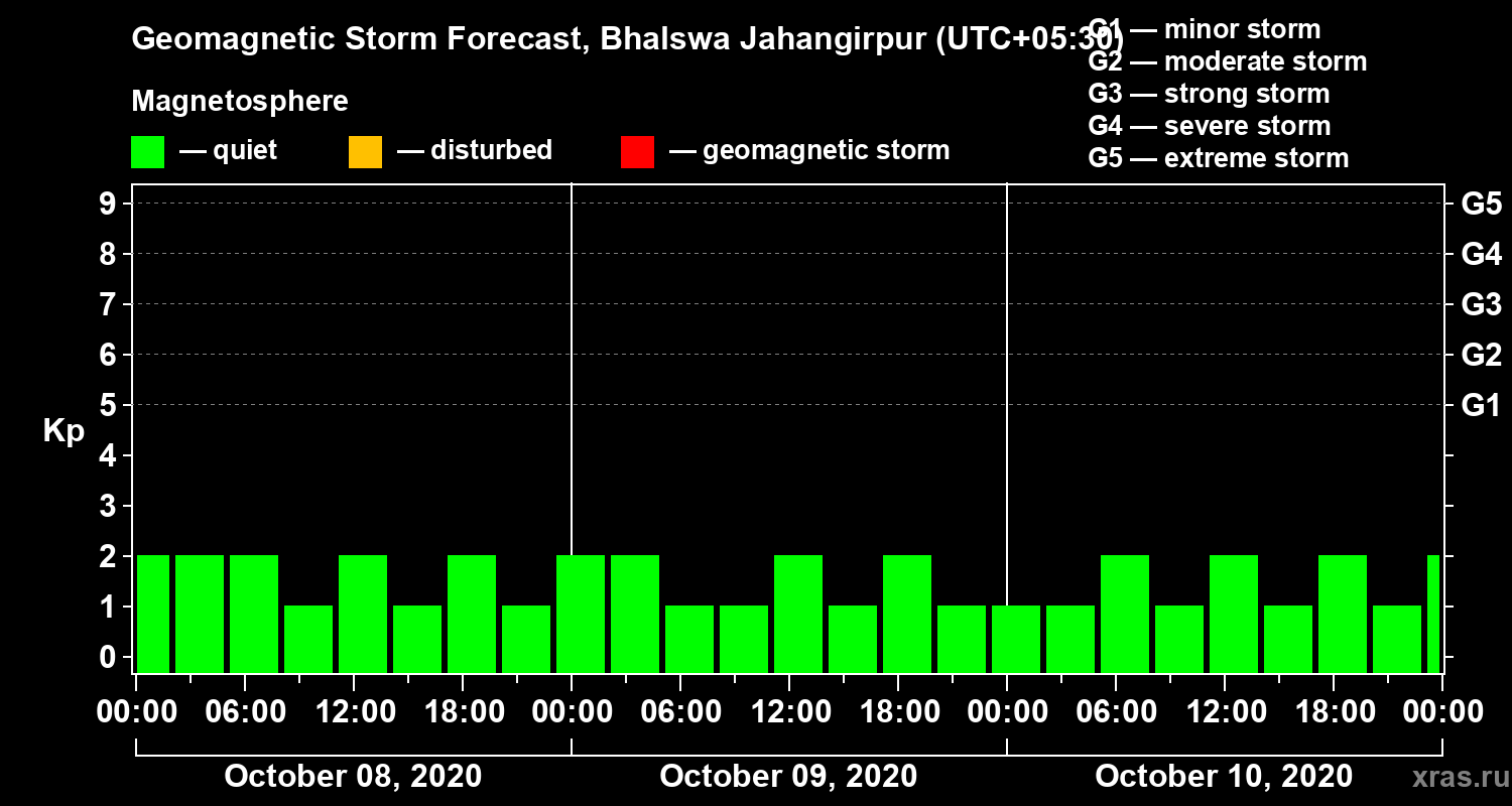 Geomagnetic activity forecast in Bhalswa Jahangirpur — Oct 08, 2020