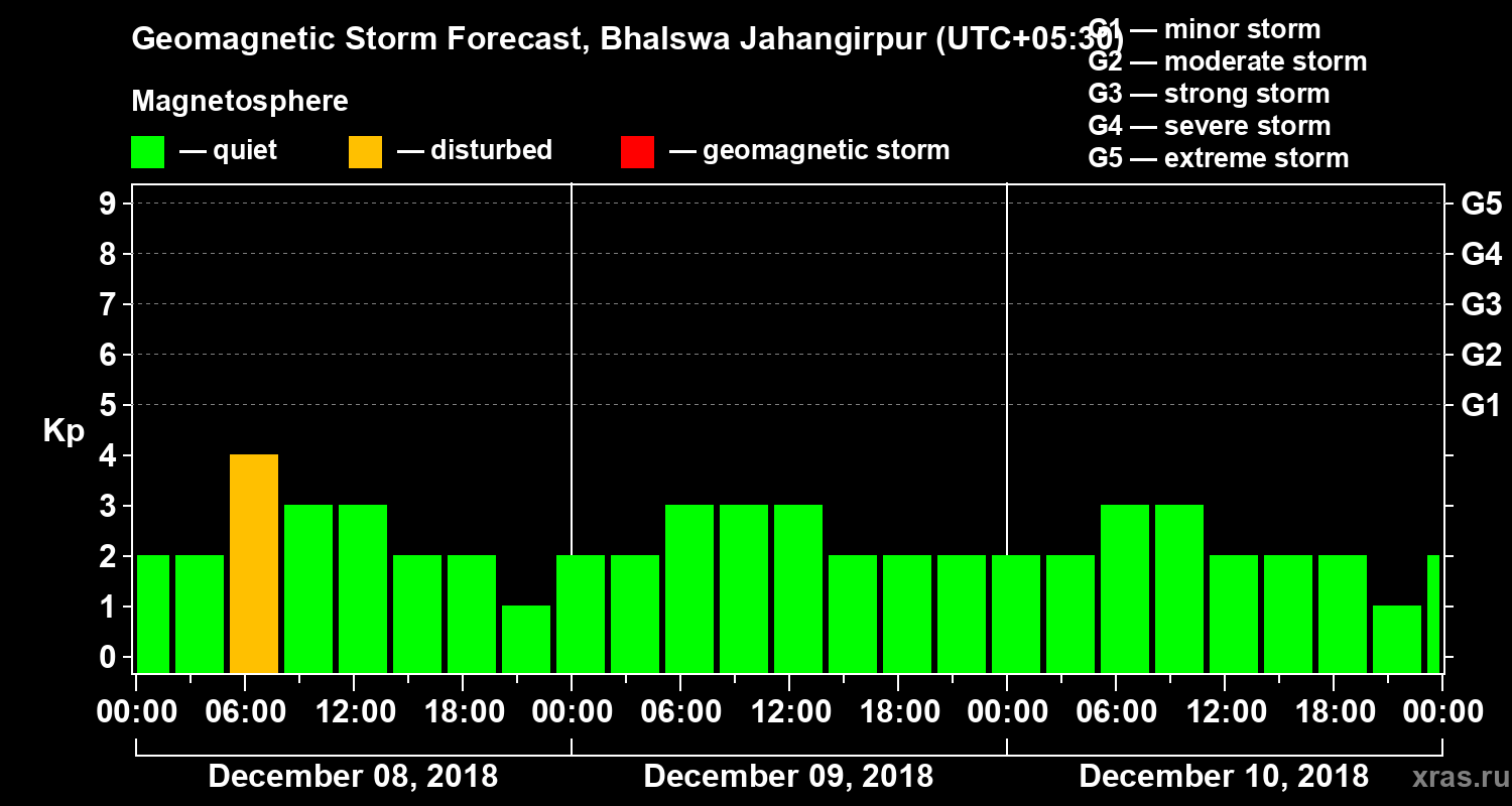 Geomagnetic storm forecast in Bhalswa Jahangirpur for Dec 08, 2018