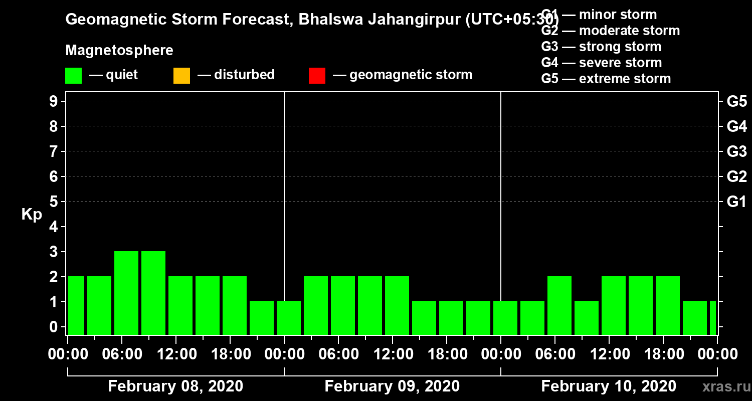 Geomagnetic storm forecast in Bhalswa Jahangirpur for Feb 08, 2020