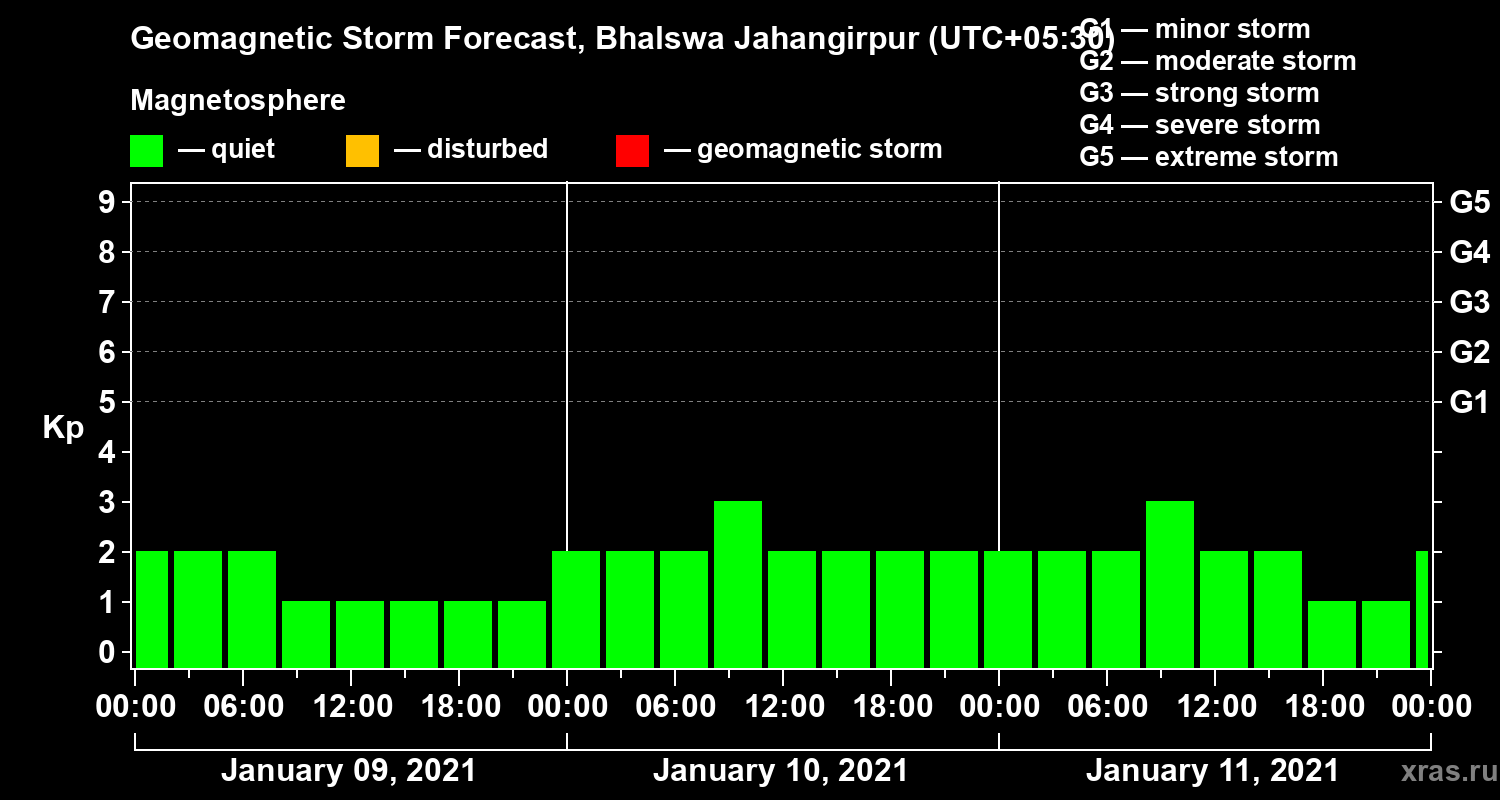 Geomagnetic activity forecast in Bhalswa Jahangirpur — Jan 09, 2021
