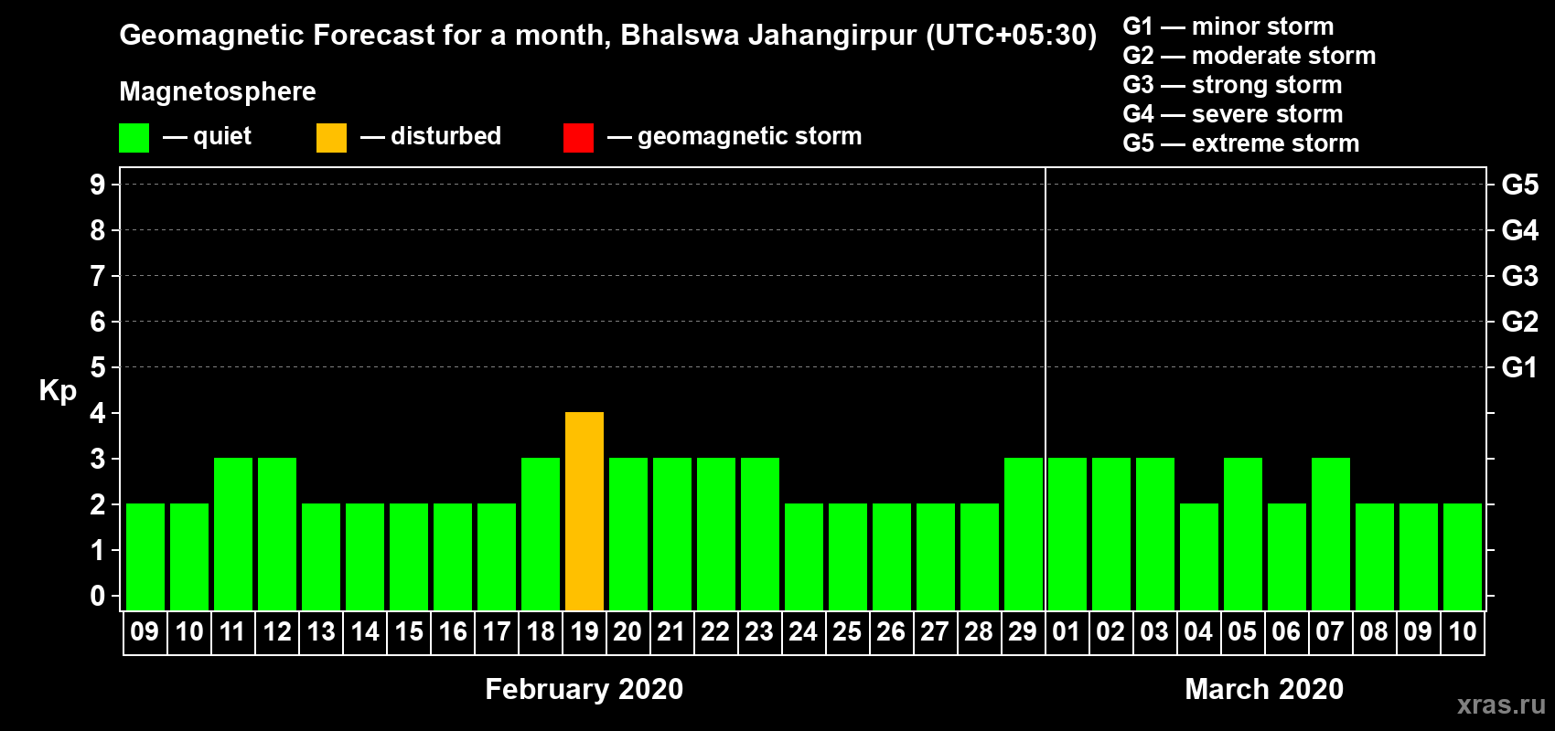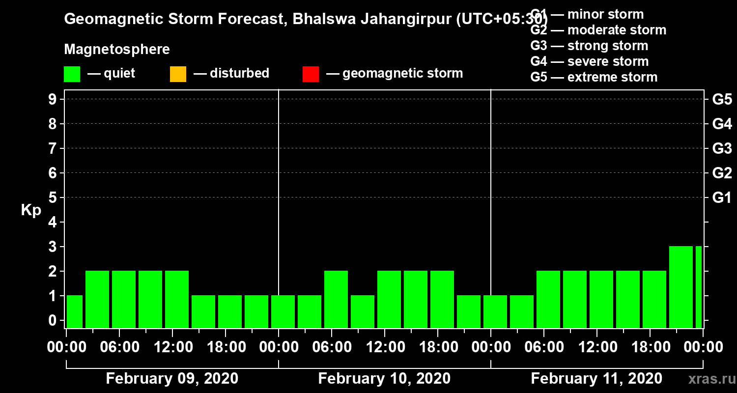 Geomagnetic storm forecast in Bhalswa Jahangirpur for Feb 09, 2020