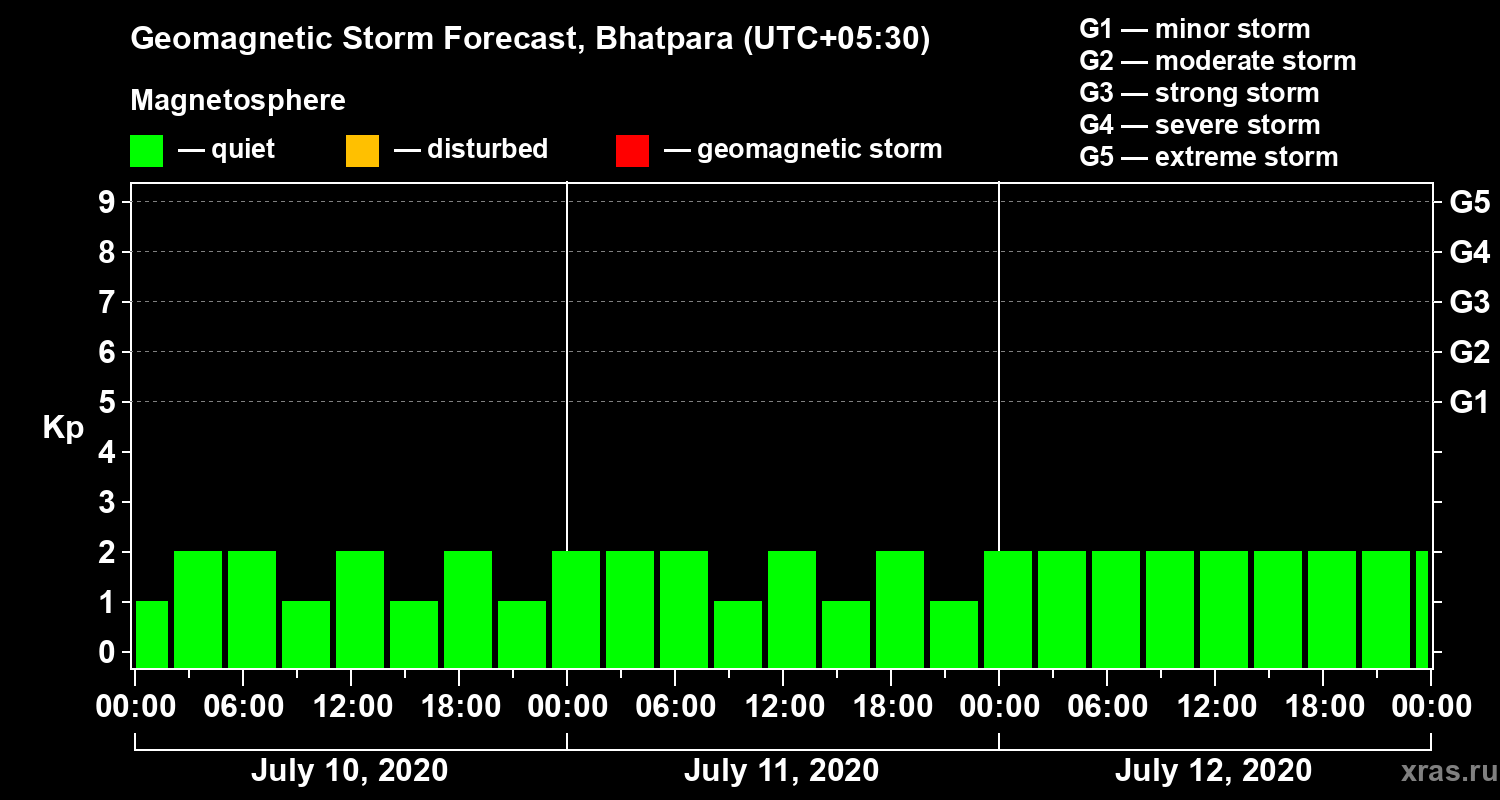 Geomagnetic storm forecast in Bhatpara for Jul 10, 2020