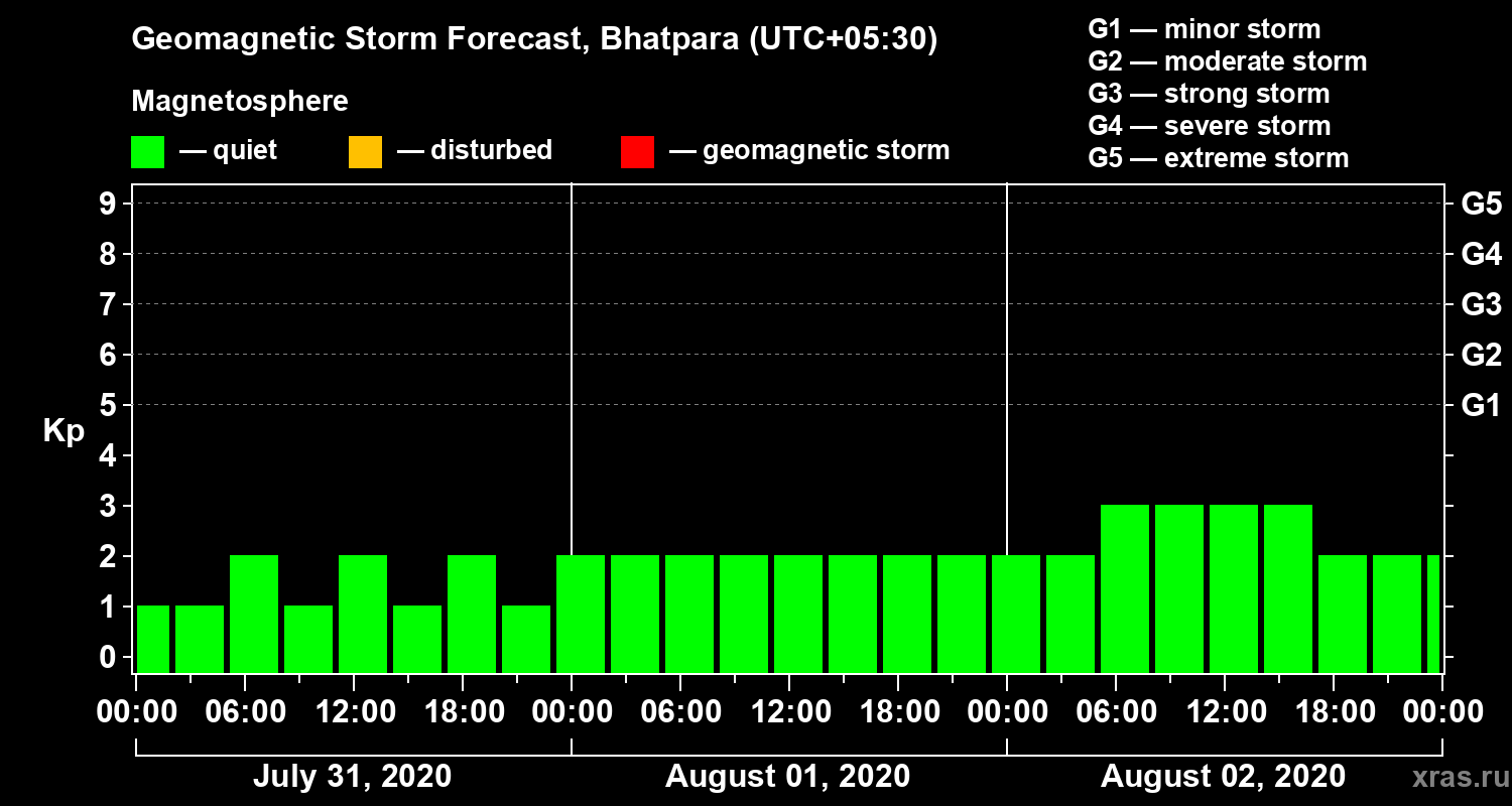 Geomagnetic storm forecast in Bhatpara for Jul 31, 2020