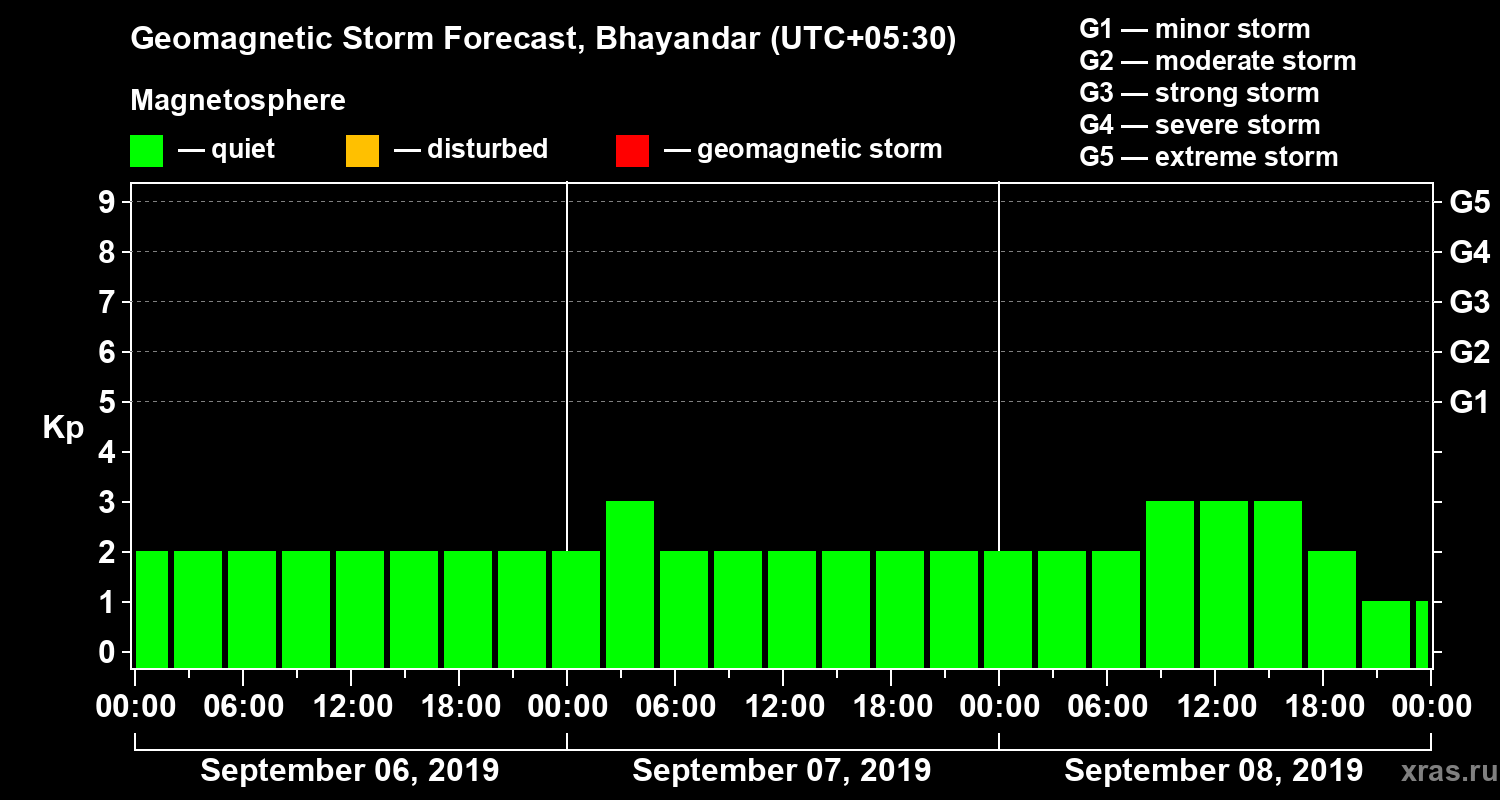 Geomagnetic storm forecast in Bhayandar for Sep 06, 2019