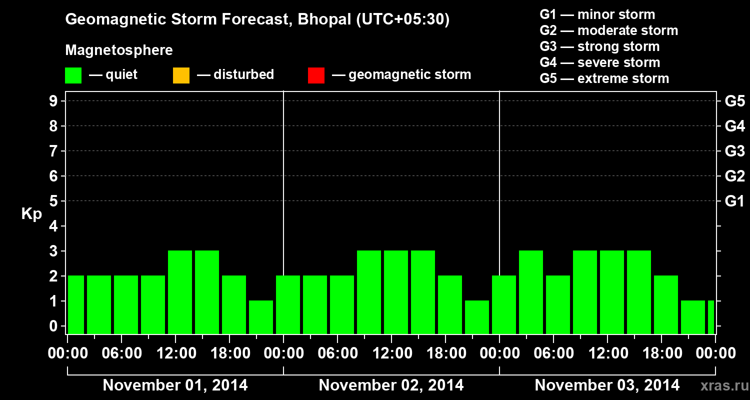 Geomagnetic storm forecast in Bhopal for Nov 01, 2014