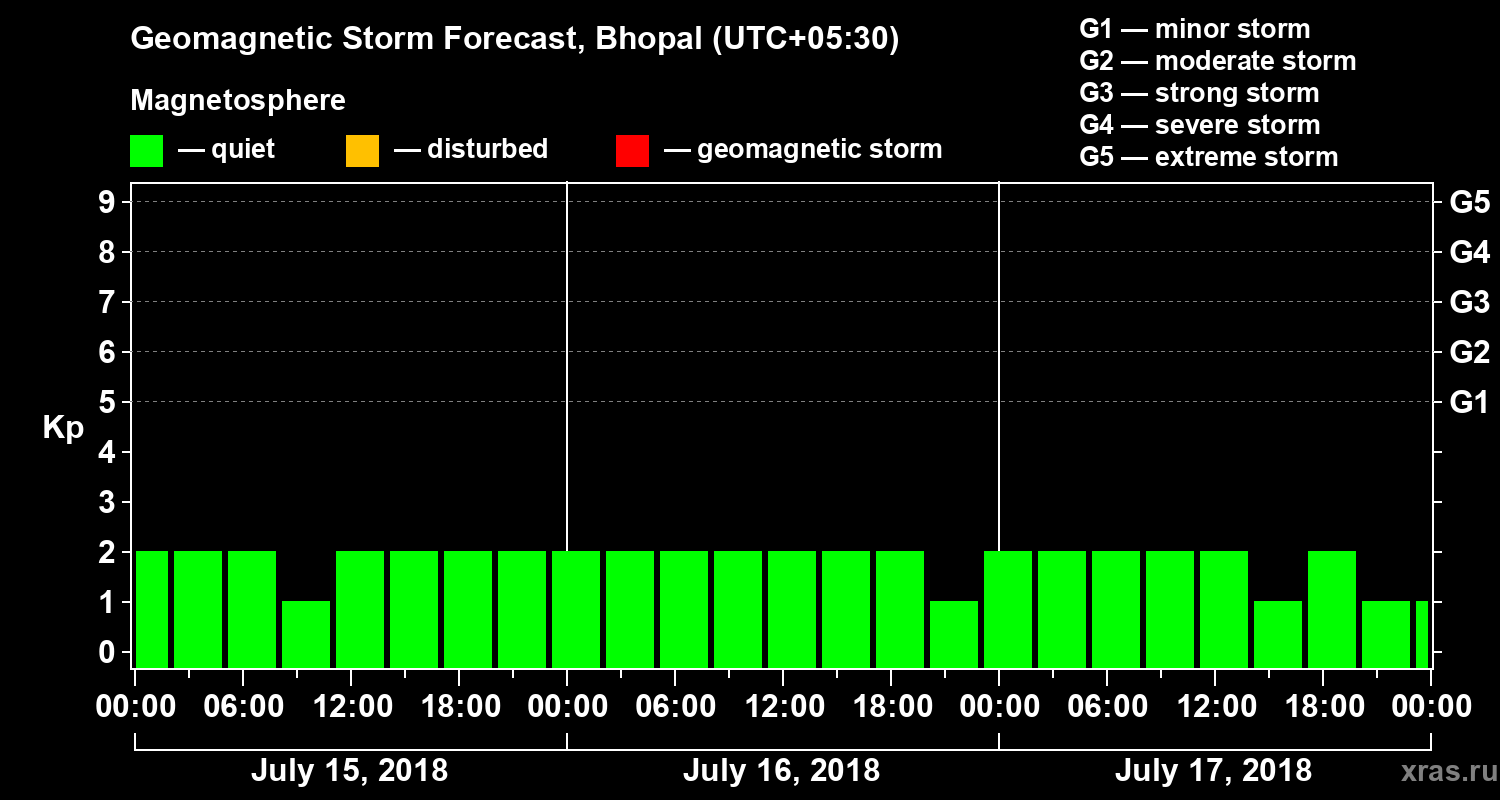 Geomagnetic storm forecast in Bhopal for Jul 15, 2018