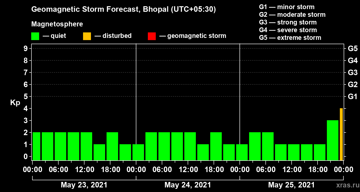 Geomagnetic activity forecast in Bhopal — May 23, 2021