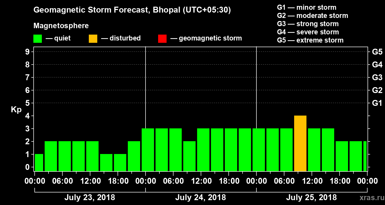 Geomagnetic storm forecast in Bhopal for Jul 23, 2018