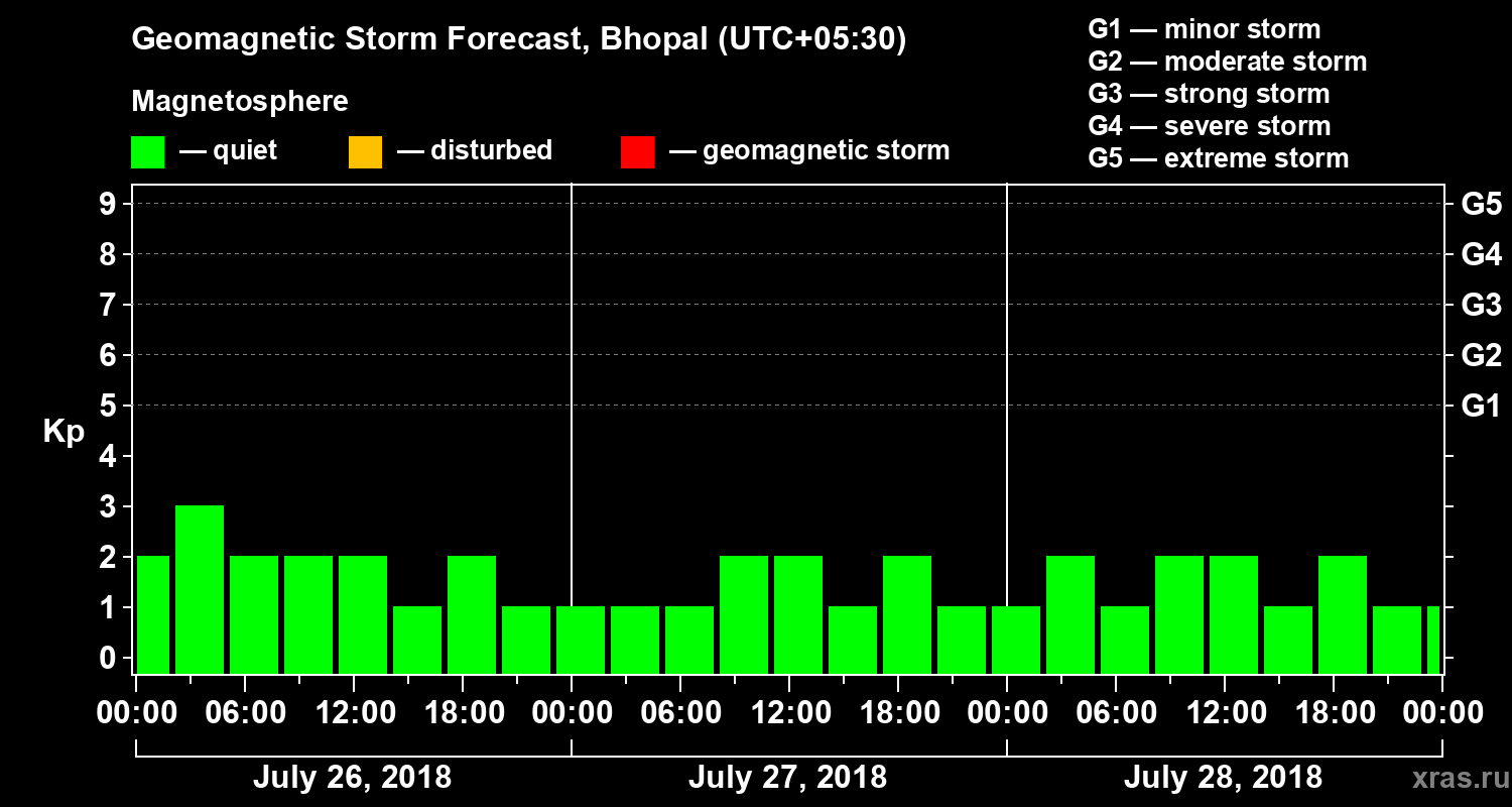 Geomagnetic storm forecast in Bhopal for Jul 26, 2018