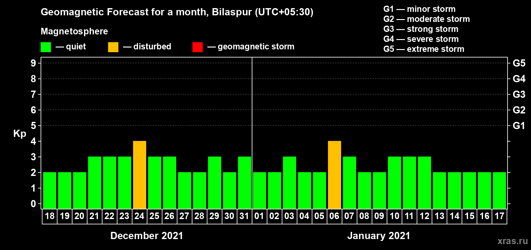 Geomagnetic storm forecast in Bilaspur for Dec 18, 2020