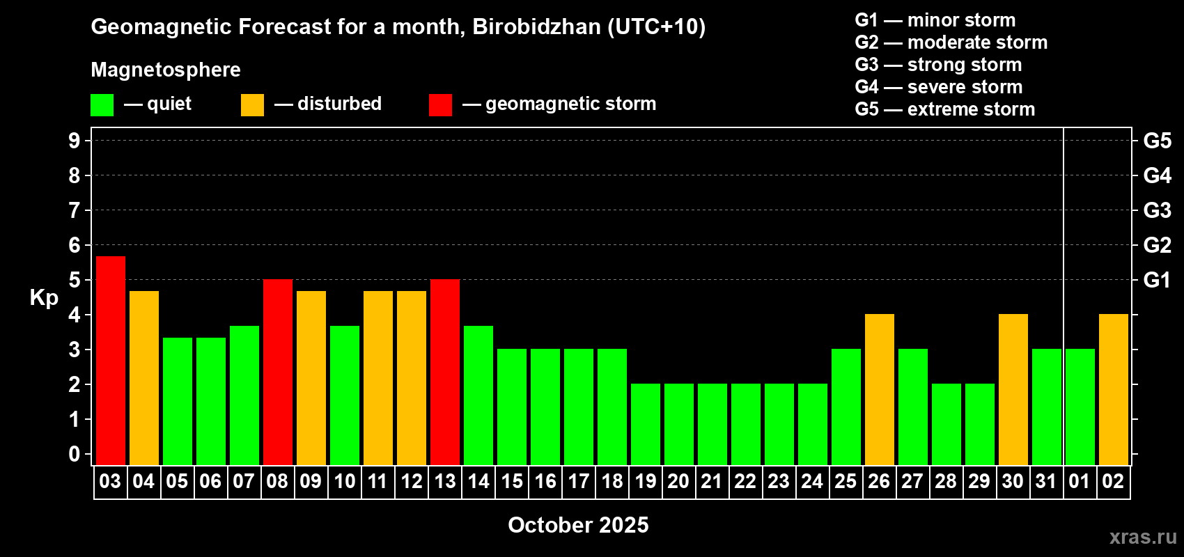 Geomagnetic storm forecast in Birobidzhan for Oct 03, 2025