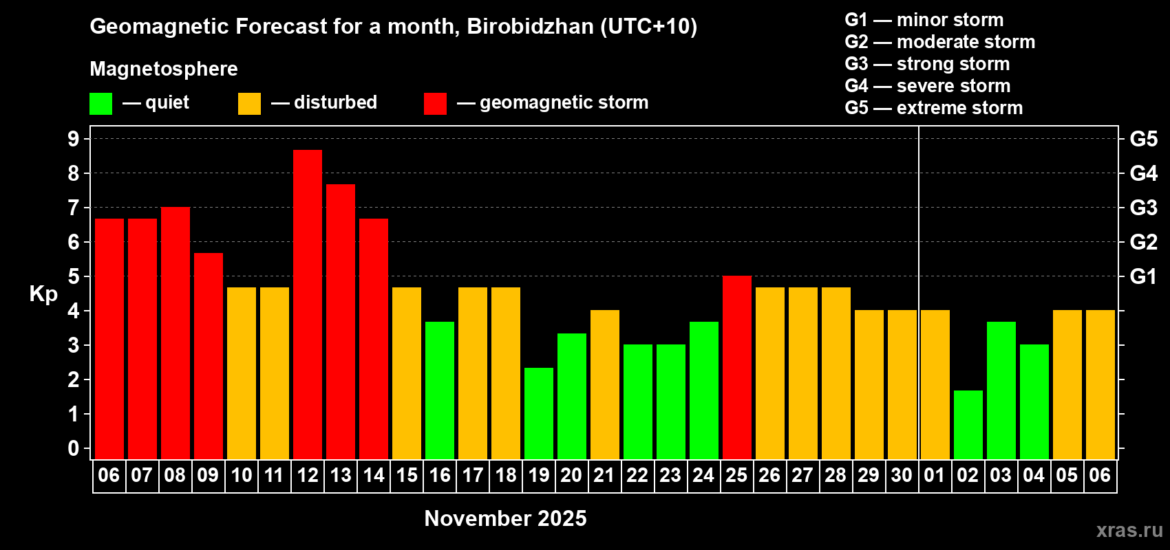 Geomagnetic storm forecast in Birobidzhan for Nov 06, 2025