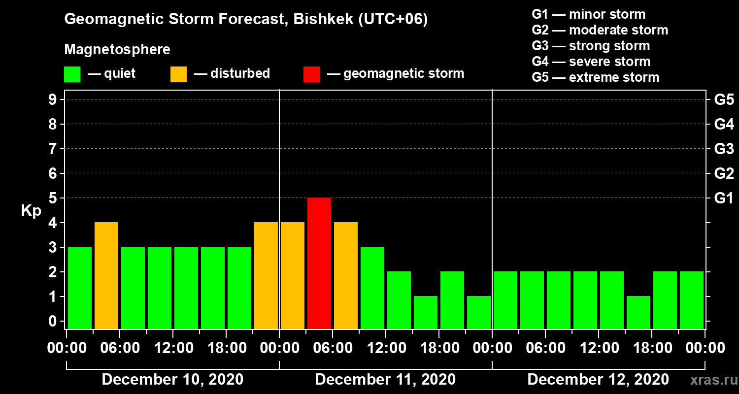 Geomagnetic storm forecast in Bishkek for Dec 10, 2020