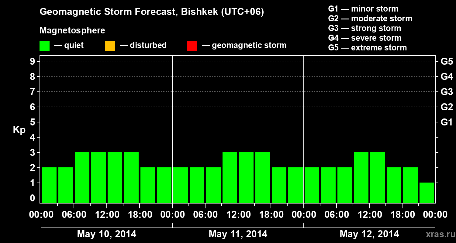 Geomagnetic activity forecast in Bishkek — May 10, 2014