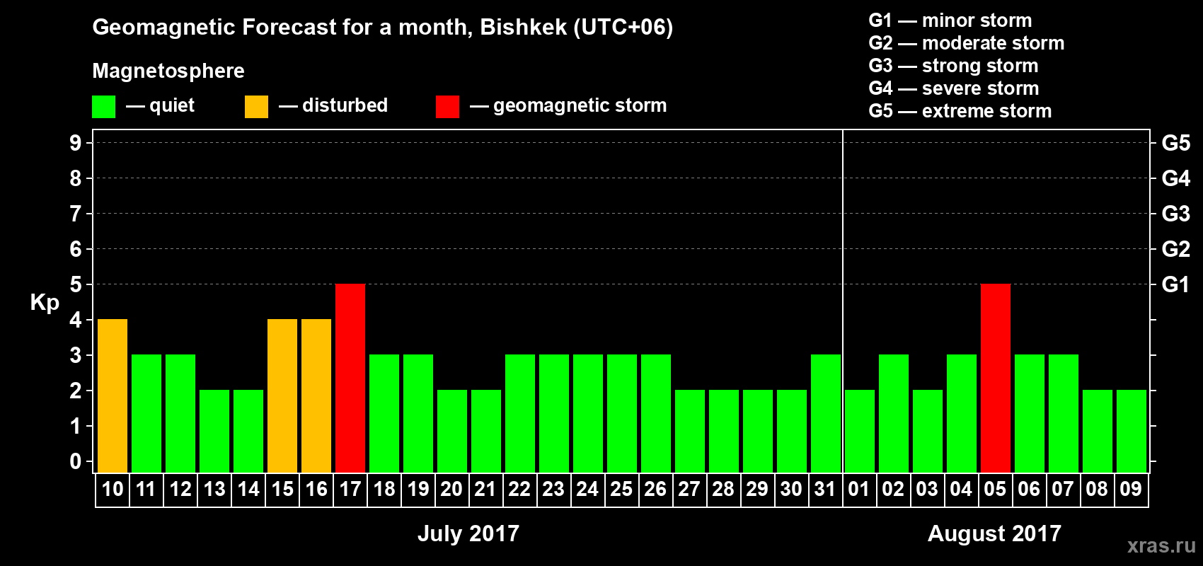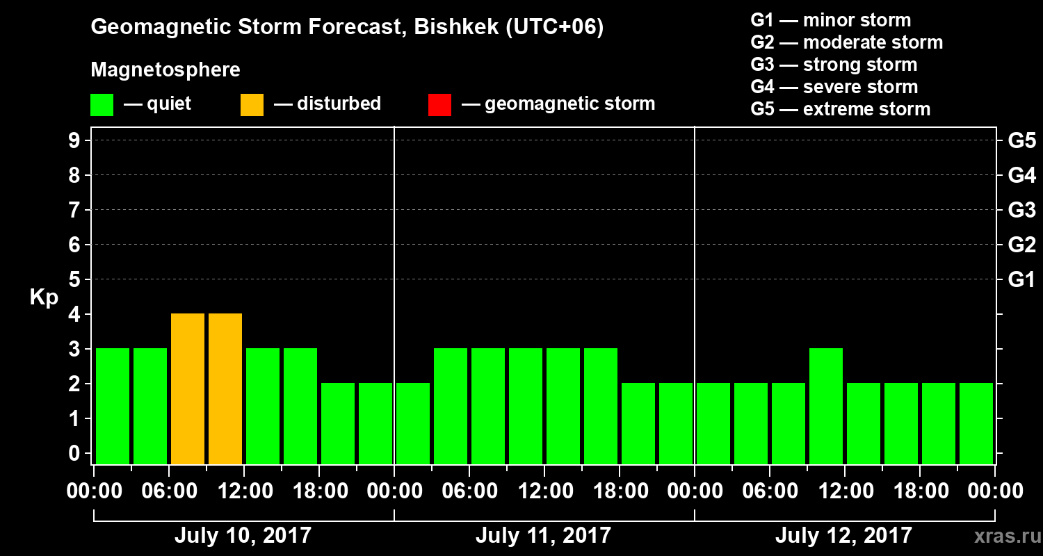 Geomagnetic storm forecast in Bishkek for Jul 10, 2017
