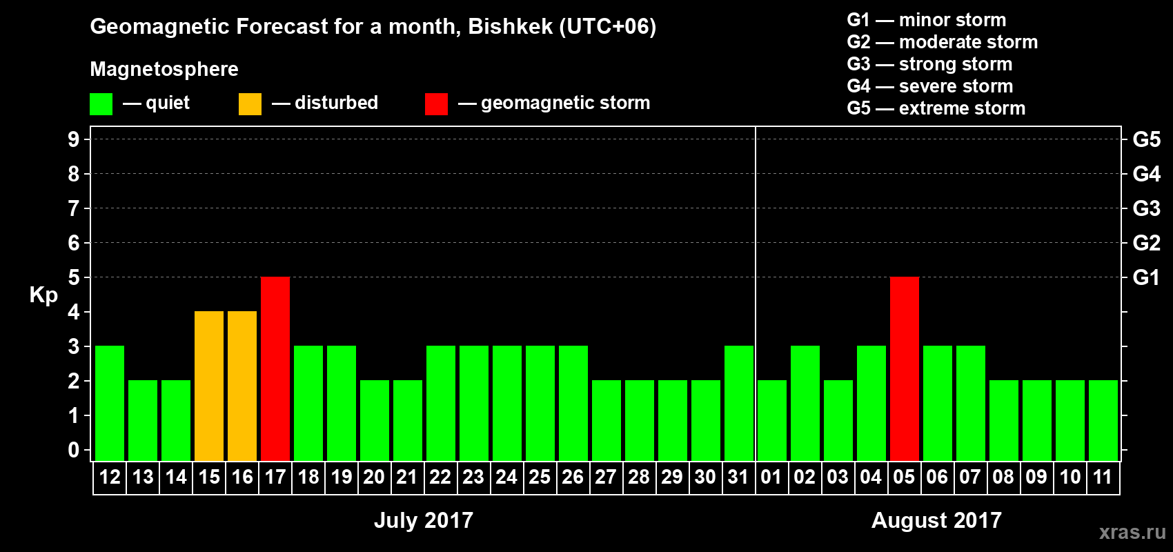 Geomagnetic storm forecast in Bishkek for Jul 12, 2017