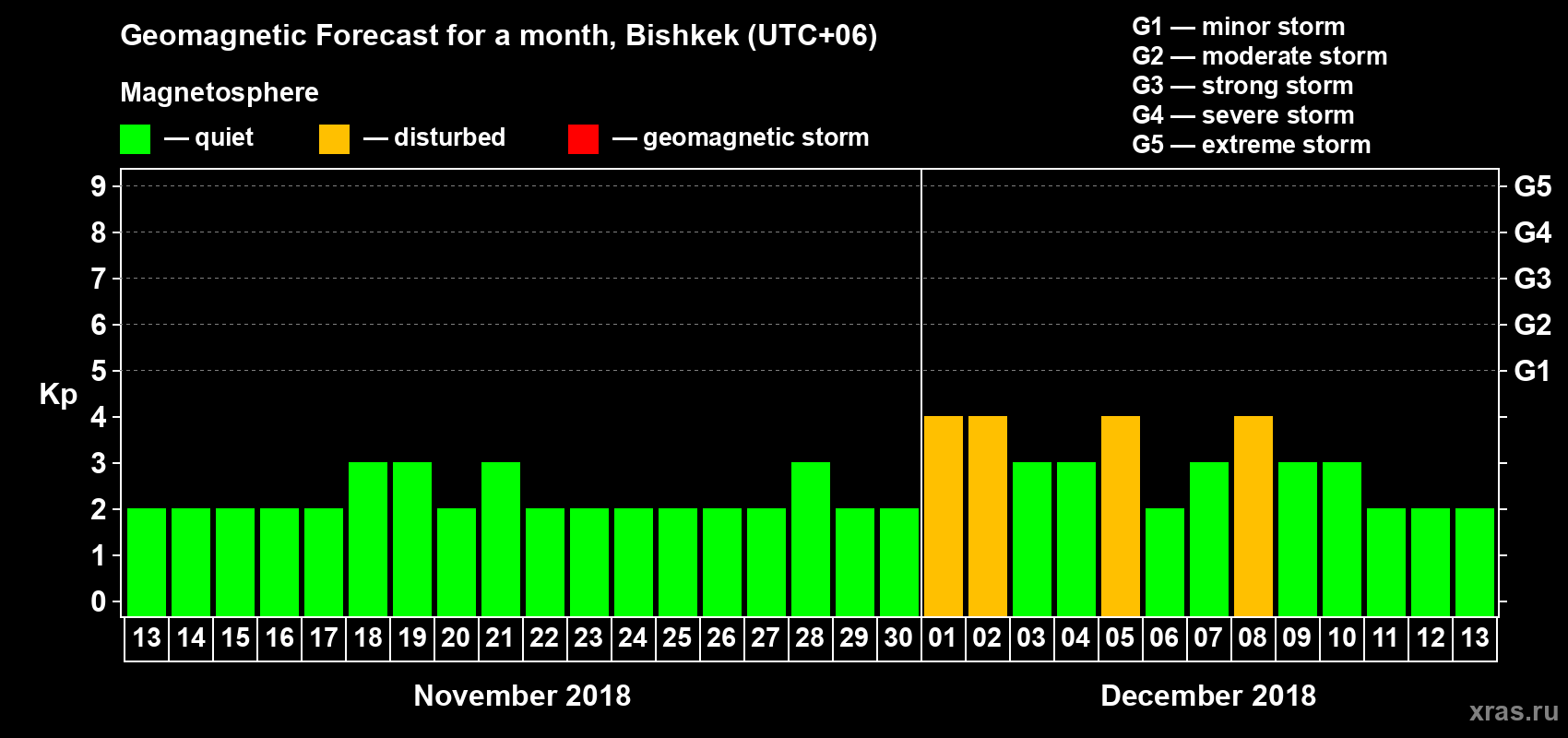 Geomagnetic activity forecast in Bishkek — Nov 13, 2018