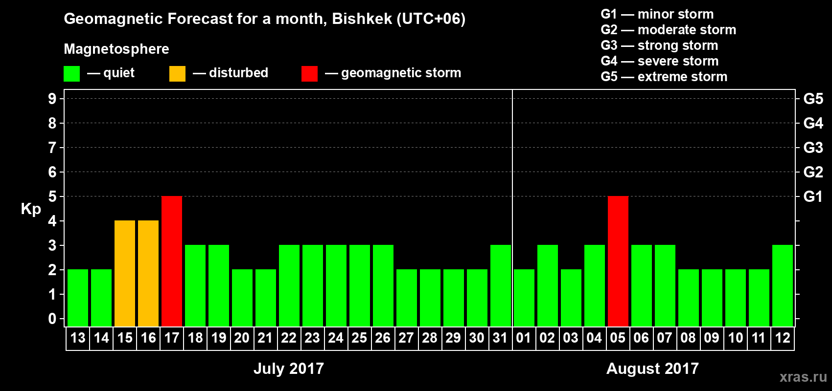 Geomagnetic storm forecast in Bishkek for Jul 13, 2017