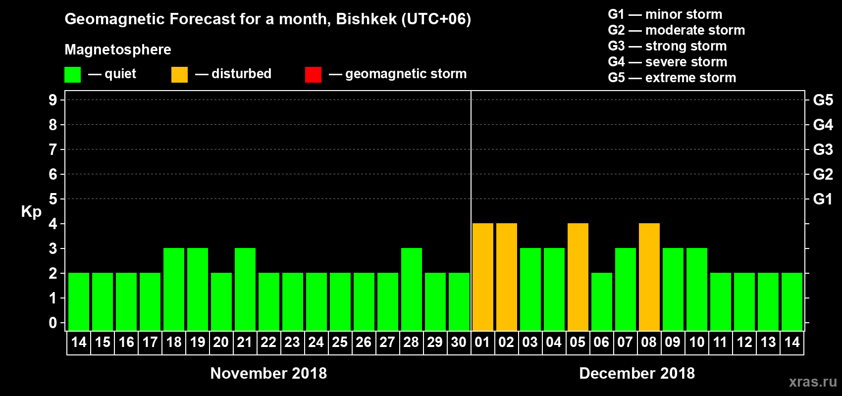 Geomagnetic activity forecast in Bishkek — Nov 14, 2018