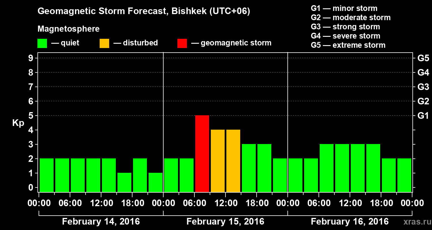 Geomagnetic storm forecast in Bishkek for Feb 14, 2016