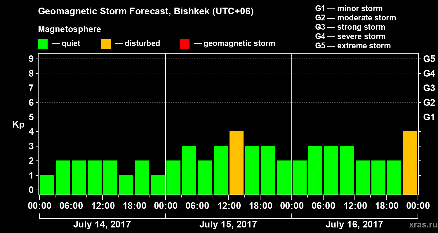 Geomagnetic storm forecast in Bishkek for Jul 14, 2017