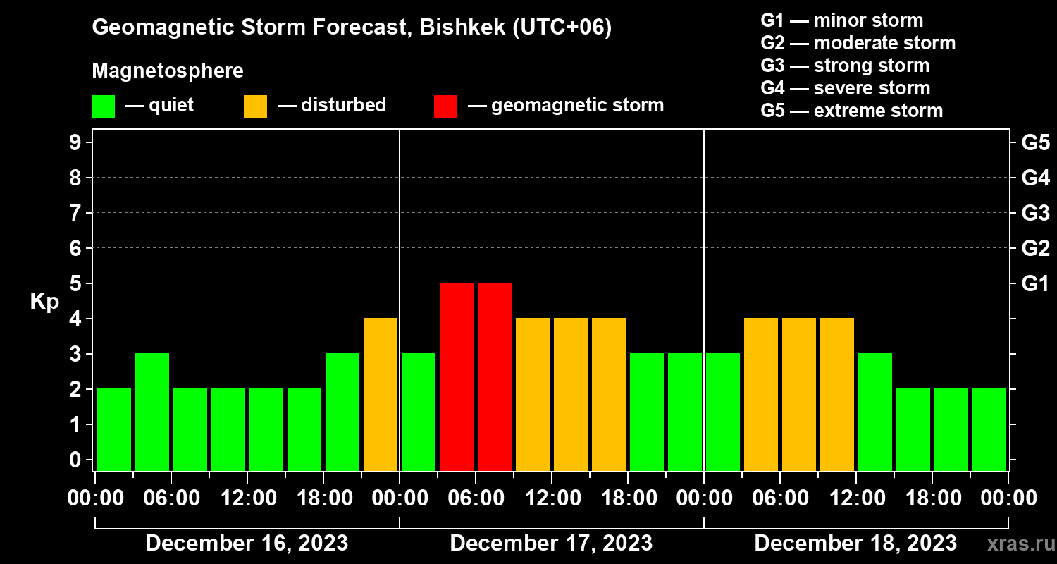 Geomagnetic activity forecast in Bishkek — Dec 16, 2023